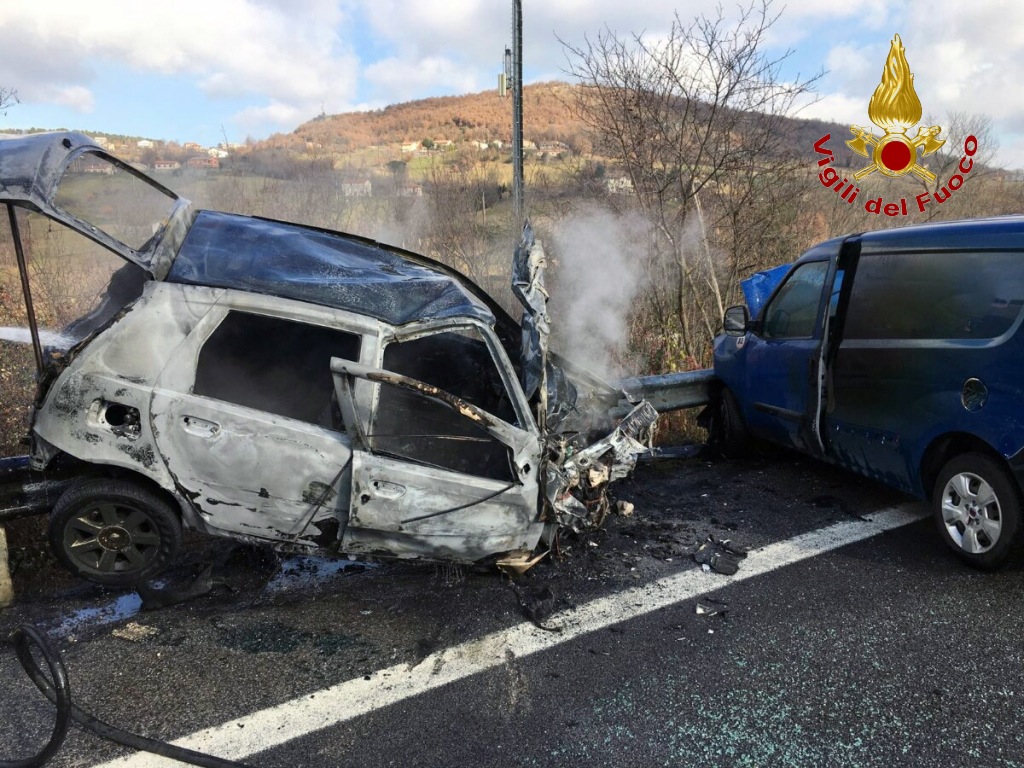 Grave incidente sull’Ofantina, in fiamme auto a metano