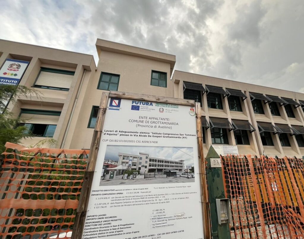 – Istituto Omnicomprensivo San Tommaso d’Aquino: proseguono speditamente i lavori di adeguamento sismico del plesso centrale in via Alcide De Gasperi.