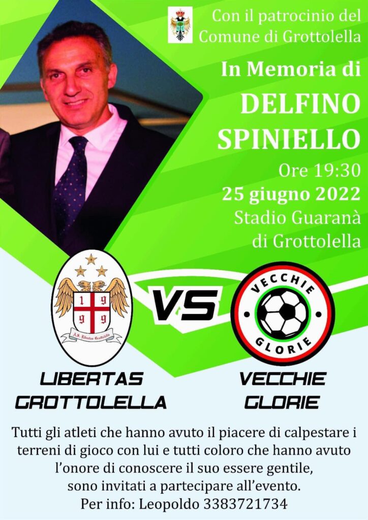 “Un evento molto atteso in paese, che vede il patrocinio dell’amministrazione comunale, la partecipazione della Libertas Grottolella e di tutti coloro i quali hanno avuto l’onore e il piacere di giocare con Delfino Spiniello. Tutta la popolazione è invitata a partecipare” – dichiarano gli organizzatori in una nota stampa.