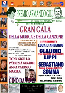 Grande chiusura con il figlio d’arte di Mario, Gino Da Vinci. Prima della serata di gala l’amministrazione comunale di Grottolella intitolerà una piazza a Mario Da Vinci riconoscendo al cantante napoletano il suo impegno per la rivalutazioni delle tradizioni musicali di Grottolella. Di cui Armando Gill è parte integrante.