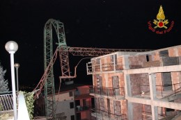 Solofra – Intorno alle ore 18 di oggi, i Vigili del Fuoco di Avellino, sono intervenuti a Solofra, tra via Delle Vigne e via Sant’Andrea, per una gru da cantiere, inclinatasi, probabilmente a causa delle forti folate di vento che imperversavano nella zona. La squadra intervenuta, visto che la gru, alta circa 20 metri, poteva cadere su di un palazzo adiacente e su delle villette limitrofe, provvedeva allo sgombero cautelativo di circa otto nuclei familiari, una ventina di persone in tutto. Provvidenziale decisione, infatti durante queste operazioni, la pesante gru si piegava su se stessa e cadeva, su di un fabbricato adiacente in costruzione. Per fortuna, nessuna persona è rimasta coinvolta, anche se si sono vissuti momenti di vero terrore all’atto della caduta.