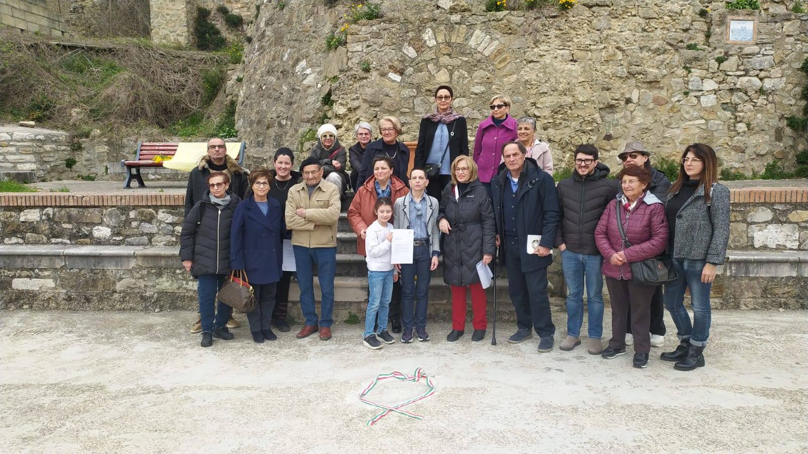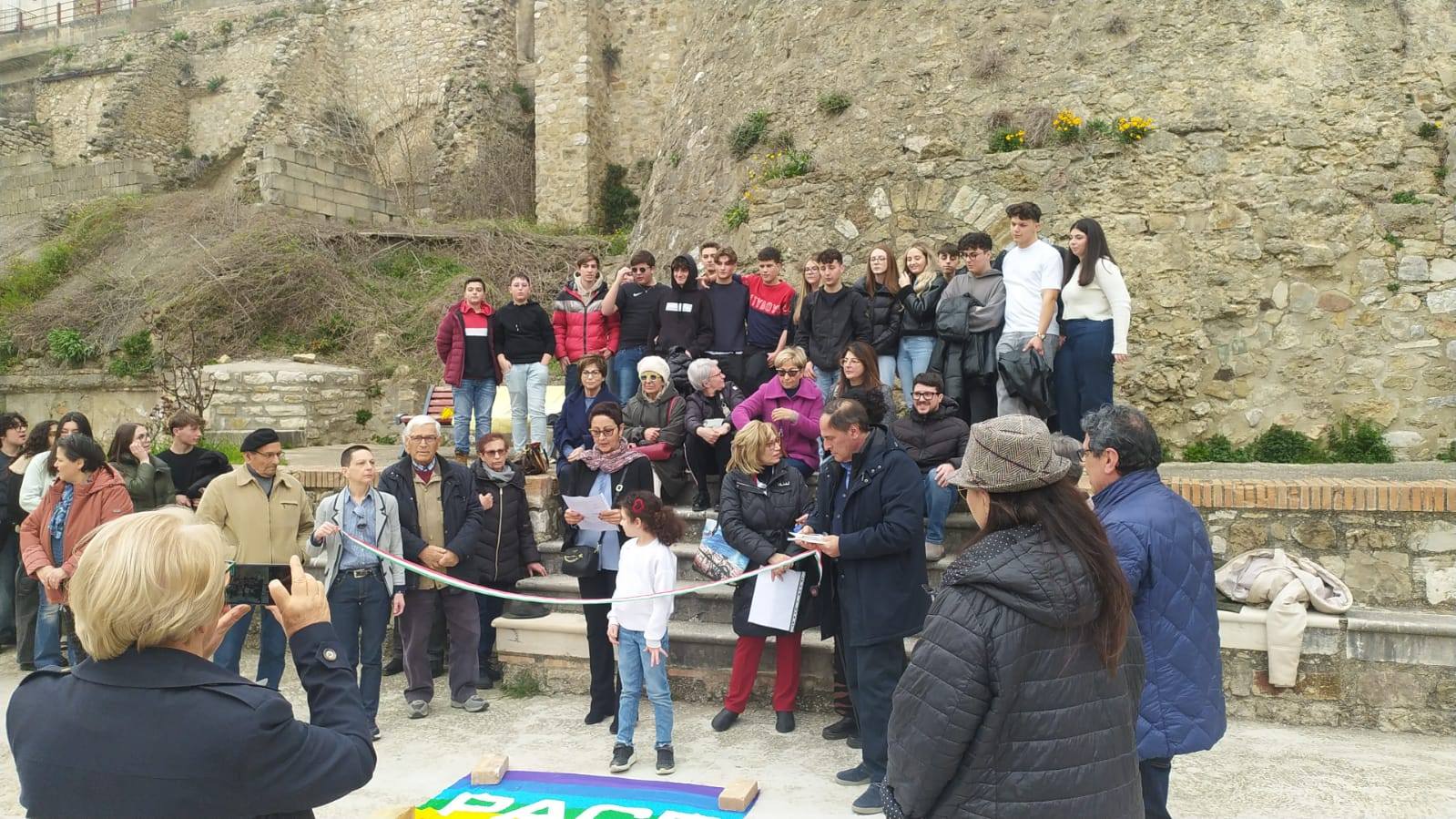 Al termine della manifestazione, è stato affisso uno striscione con la scritta “Questa scuola ripudia la guerra”. L’evento si è concluso con un momento di grande significato: l’inaugurazione della “Pietra d’Inciampo” presso la Torre di Nanno, realizzata dal maestro scalpellino Michele Del Re.