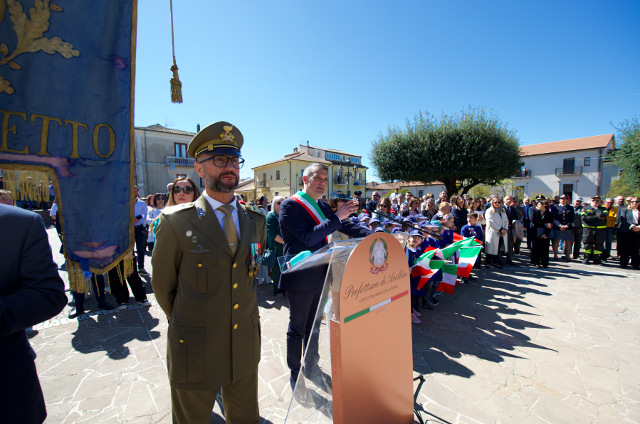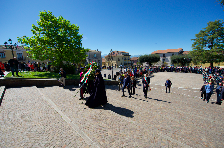 La cerimonia ha avuto inizio con la deposizione di una corona di alloro al monumento ai Caduti della Seconda Guerra Mondiale in piazza IV Novembre. A questa, ha fatto seguito lo svelamento, da parte del sindaco di Montemiletto, della targa dedicata a Eustachio Gubitosa, partigiano nato nello stesso comune e fucilato a Biella dai nazifascisti a soli 19 anni.