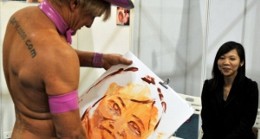 Un’occhiata alle sue creazioni artistiche: manierismo, impressionismo, iperrealismo? Mah, sembra che preferisca ritrarre personaggi famosi in stile parodistico, tipo cartoons…e sicuramente quel pennello umano riesce ad essere un buon ritrattista…