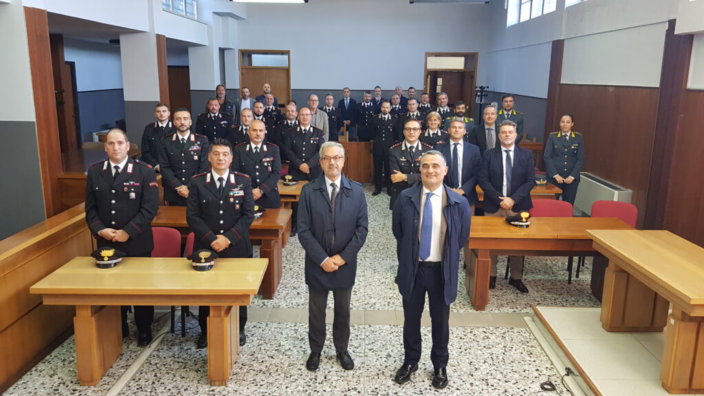 Nella mattinata di oggi, presso il Palazzo di Giustizia di Ariano, il Procuratore della Repubblica di Benevento, Aldo Policastro, insieme al Procuratore Aggiunto, Gianfranco Scarfò, ha incontrato una nutrita rappresentanza di Carabinieri, Polizia di Stato e Guardia di Finanza operante sul territorio avellinese. L’incontro si è svolto nell’aula del Giudice di pace ed ha avuto un significato particolare in vista del trasferimento del Procuratore Policastro alla Procura Generale di Napoli.