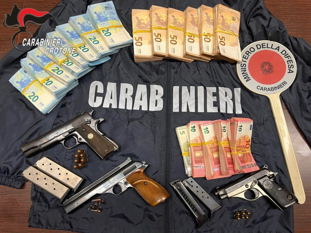 PAGO VALLO LAURO- Un ventitreenne del Vallo di Lauro, legato da parentele con esponenti apicali del clan Cava e un trentaquattrenne del nolano sono stati arrestati a Crotone con tre pistole clandestine e quasi 48.000 euro in contanti. L’operazione è avvenuta nel corso di un controllo stradale effettuato dai Carabinieri della Sezione Radiomobile di Crotone sulla SS 106, in località Poggio Pudano. I militari, insospettiti dal comportamento nervoso dei due occupanti di un’auto, hanno proceduto a una perquisizione del veicolo, rinvenendo tre armi perfettamente funzionanti e pronte all’uso, insieme a 47.660 euro in contanti, nascosti in un vano ricavato nel bagagliaio. I soggetti, B.C., 34 anni, e S.C., 23 anni, residenti rispettivamente nelle province di Avellino e Napoli, sono stati arrestati in flagranza con l’ipotesi di detenzione e porto abusivo di armi clandestine e ricettazione. Nel dettaglio, i carabinieri hanno sequestrato: una pistola Beretta calibro 7.65, priva di matricola, con 6 proiettili; una pistola Colt calibro 45, anch’essa priva di matricola, con 7 proiettili; una pistola Bernardelli calibro 22, con matricola punzonata e 7 proiettili. I due arrestati sono stati trasferiti presso la casa circondariale di Crotone, a disposizione dell’Autorità Giudiziaria. Le indagini, coordinate dalla Procura della Repubblica di Crotone, sono in corso per chiarire la provenienza delle armi e del denaro.