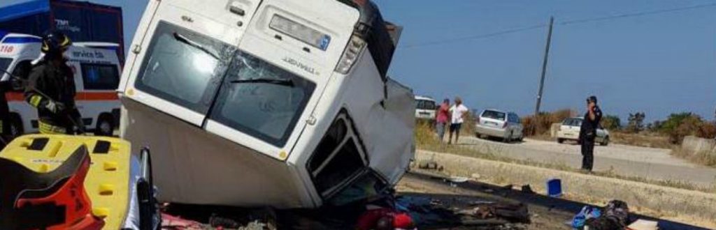 Dodici persone, tutte migranti, sono morte  in un incidente stradale avvenuto oggi pomeriggio (lunedì 6 agosto), lungo la statale 16 all’altezza dello svincolo per Ripalta, nelle campagne di Lesina. Stavano rientrando dopo una lunga giornata di lavoro nei campi.
