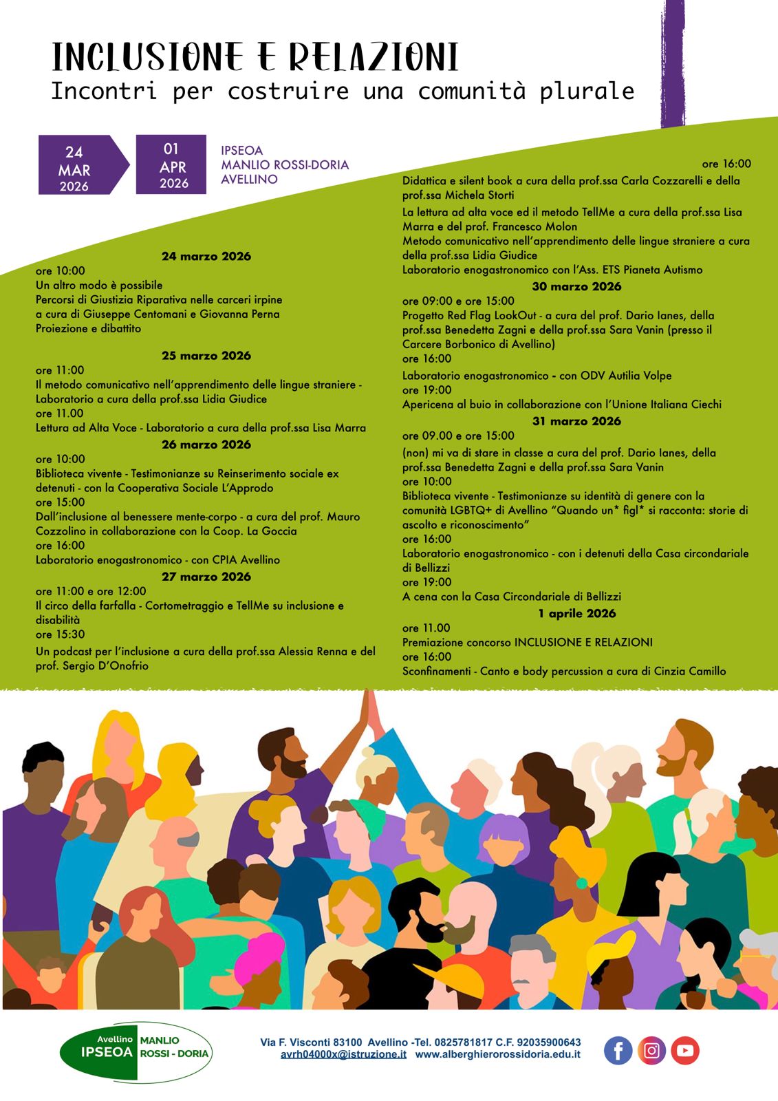 IPSEOA “Manlio Rossi-Doria” di Avellino, scuola polo per la formazione e per l’inclusione, la manifestazione “Inclusione e Relazioni” organizzata al fine di promuovere, nelle giovani generazioni, i principi della cittadinanza attiva, della interculturalità, del rispetto della diversità e della cultura dell’accoglienza.