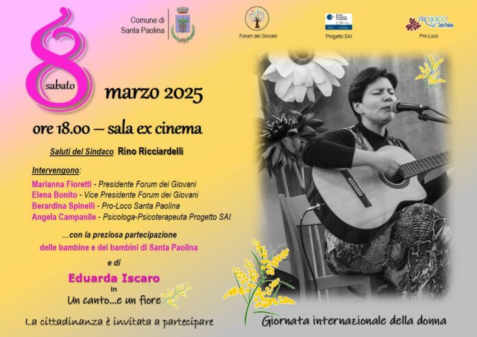 Ad aprire l’incontro saranno i saluti del sindaco di Santa Paolina, Rino Ricciardelli, che sottolineerà l’importanza della giornata e l’impegno della comunità verso la parità di genere, un tema fondamentale da promuovere ogni giorno.