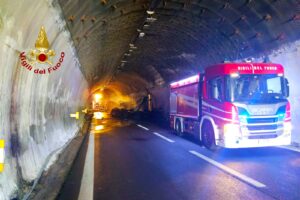 L’autista di nazionalità Bulgara era partito da Pescia in provincia di Pistoia dove aveva caricato ed era diretto al porto di Brindisi dove si sarebbe dovuto imbarcare per la Grecia per scaricare i pesanti rotoloni, solo che proprio sotto la galleria si è accorto della fuoriuscita di fiamme e fumo dal vano motore e ha fatto appena in tempo ad abbandonare l’automezzo per mettersi in salvo.