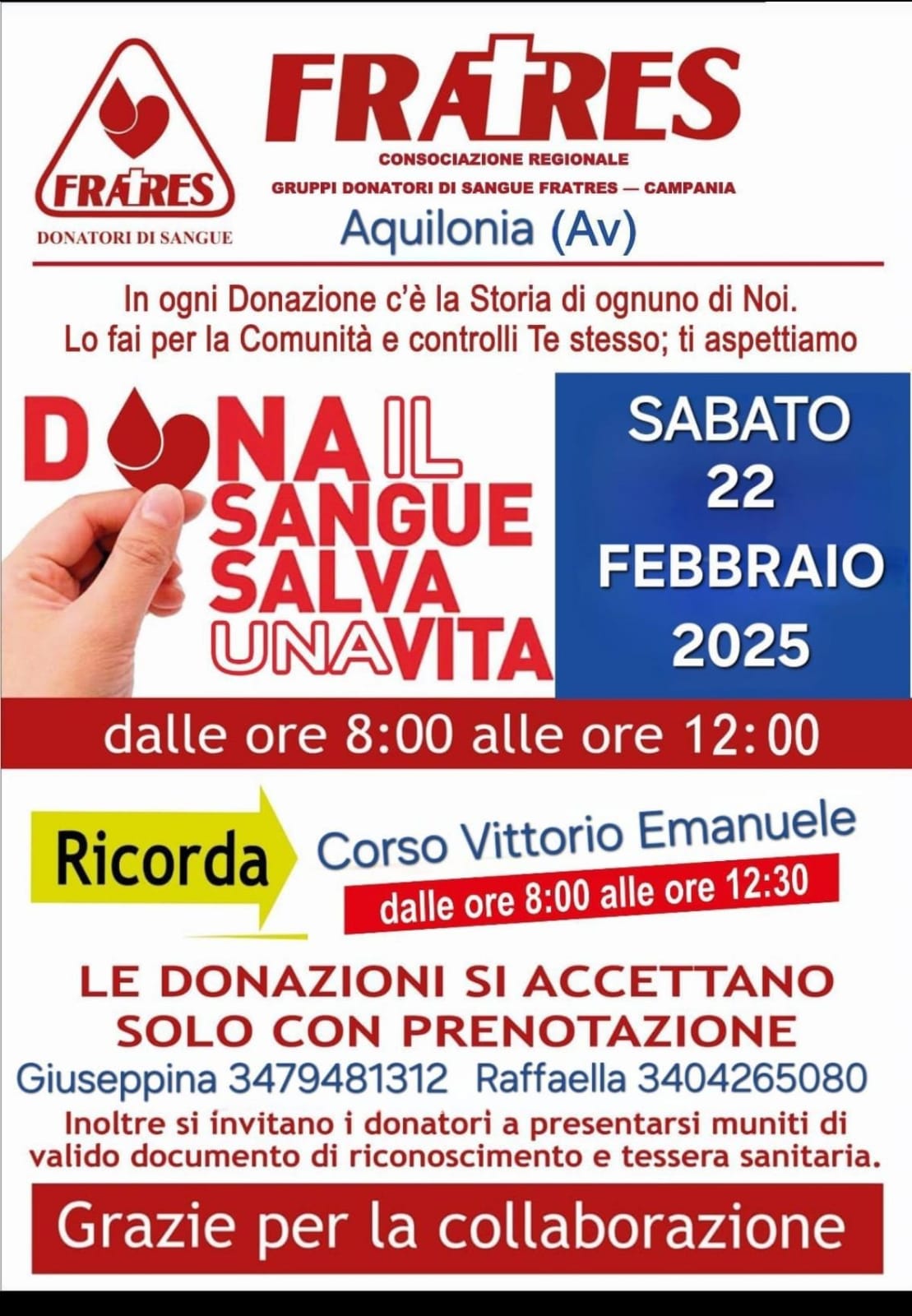 Per garantire un’organizzazione efficiente, le donazioni saranno accettate solo su prenotazione.