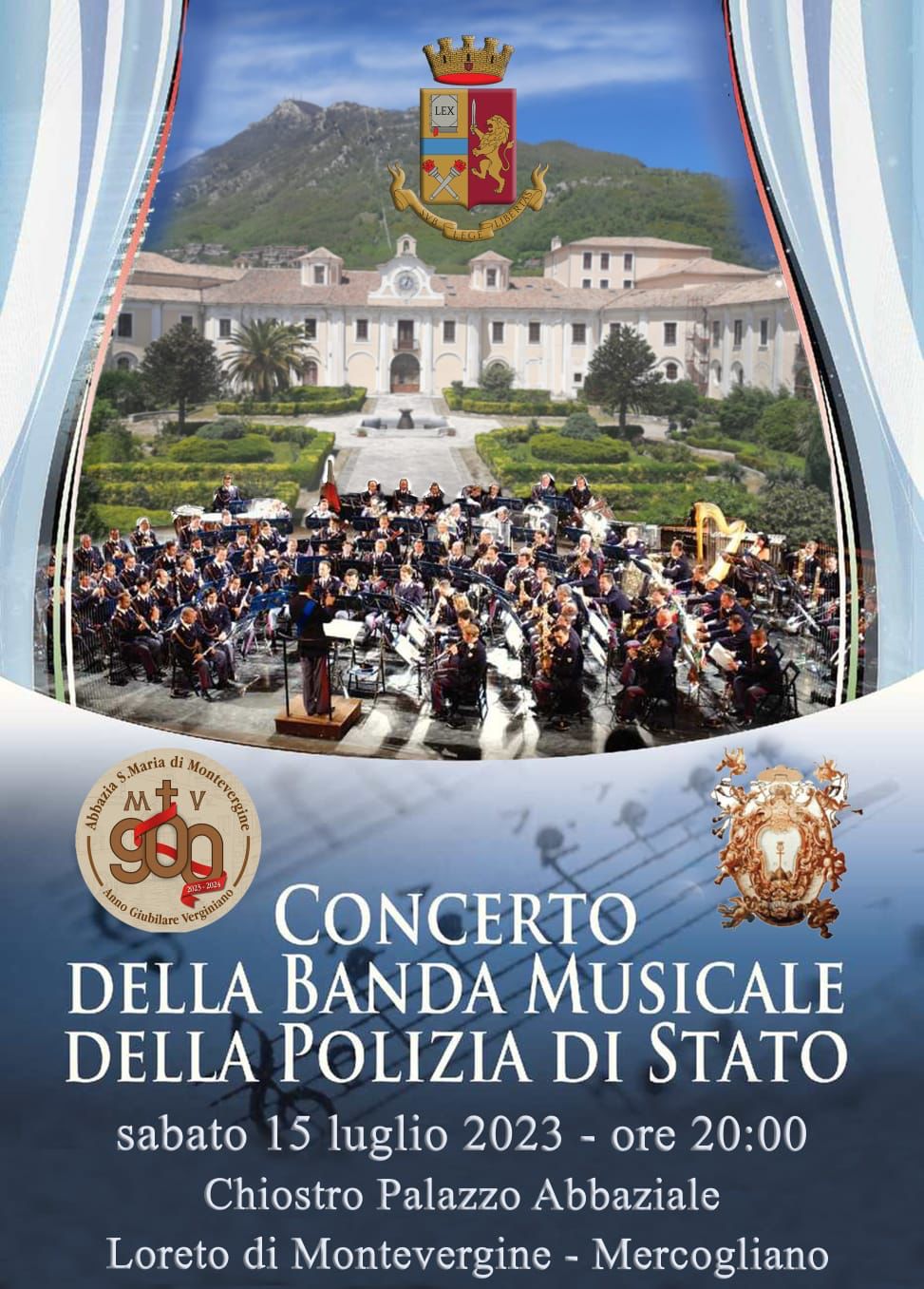 Nell’ambito delle iniziative poste in essere in occasione dell’anno Giubilare Verginiano per celebrare i 900 anni della fondazione dell’Abbazia di Montevergine, sabato 15 luglio 2023, la splendida e suggestiva cornice del chiostro settecentesco dell’Abbazia di Loreto di Mercogliano costituirà, a partire dalle ore 20:00, la cornice nella quale La Polizia di Stato sarà presente con la Banda Musicale. Tra tradizione e modernità i concerti della Banda Musicale della Polizia di Stato riassumono esperienze che illustrano il percorso della musica per fiati attraverso la storia della musica e del costume con finalità di natura sociale: unire al piacere una componente educativa cercando di sensibilizzare il pubblico alla musica rafforzando principi di armonia, concordia ed ordine.