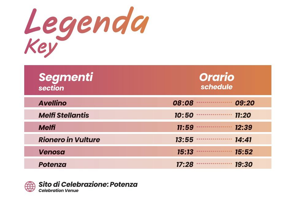Il viaggio della torcia, accesa il 26 novembre ad Olimpia in Grecia e consegnata ad Atene il 4 dicembre, è stato strutturato in modo da garantire più tappe – da fine novembre a inizio febbraio – lungo tutto lo “stivale”, percorrendo 12mila chilometri lungo 60 città e 300 Comuni: il coinvolgimento concerne tutte le regioni italiane. In specie, la Campania vedrà il passaggio della fiamma dal 21 al 28 dicembre, con un itinerario che prevede una tappa da Paestum e Salerno, proseguendo il 22 dicembre lungo la Costiera Amalfitana e Pompei, per poi raggiungere il 23 dicembre l’area vesuviana e Napoli. Dopo la pausa natalizia, il 26 dicembre farà tappa alla Reggia di Caserta, il 27 a Pomigliano d’Arco, Telese Terme e Benevento e, infine, il 28 dicembre ci sarà il transito nella città di Avellino, prima di giungere alla metà della giornata, Potenza.