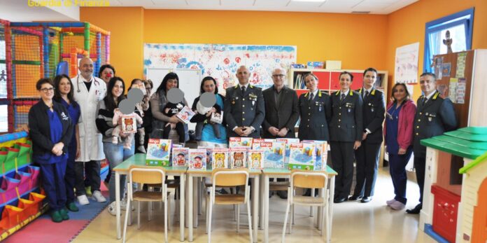 In occasione delle prossime festività natalizie, un’aliquota di militari del Comando Provinciale della Guardia di Finanza di Avellino si è recata presso l’Azienda Ospedaliera di Rilievo Nazionale e di Alta Specialità “San Giuseppe Moscati” di Avellino per consegnare giocattoli ai bambini ricoverati presso il reparto di pediatria, donati dalle Fiamme Gialle irpine. Erano presenti all’iniziativa il Direttore Generale dell’Azienza Ospedaliera, Dott. Renato Pizzuti e il Direttore della U.O.C di Pediatria, Dott. Eduardo Ponticiello, che hanno ringraziato il Corpo per la vicinanza e la solidarietà. L’iniziativa è stata l’occasione per regalare, in questo periodo di festa, attimi di allegria e spensieratezza ai piccoli degenti e, al contempo, per supportare l’opera che in questo senso già svolge, con passione e dedizione, tutto il personale medico ed ospedaliero. L’iniziativa, dall’elevato valore etico e sociale, testimonia l’attenzione e l’impegno concreto del Corpo a favore dell’intera collettività, non soltanto attraverso la lotta contro ogni forma di illegalità economico-finanziaria, ma anche con concrete azioni di solidarietà rivolte in favore delle fasce della popolazione più deboli e per questo bisognose di una maggiore attenzione sociale.