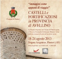 Dopo il recentissimo successo del Giffoni Film Festival, dove ha rappresentato le eccellenze del territorio irpino, non solo storico-architettoniche, ma anche eno-gastronomiche, la Mostra Fotografica “Immagini come appunti di viaggio. Castelli e Fortificazioni in provincia di Avellino”, realizzata da Giuseppe Ottaiano, Art Director di SEMA e fotografo per passione, torna in Irpinia, nella prestigiosa location della Dogana Aragonese di Flumeri.