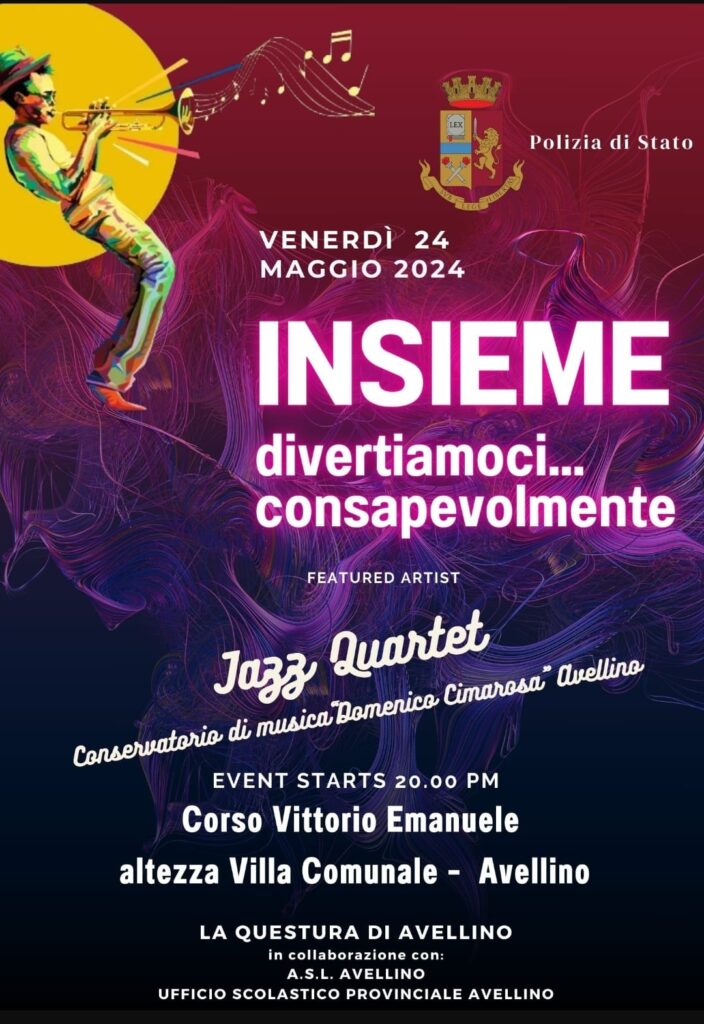 Nell’ambito delle iniziative di sensibilizzazione riguardanti le tematiche della prevenzione, sicurezza e legalità, la Polizia di Stato lancia una campagna informativa denominata “Insieme divertiamoci… consapevolmente” il cui evento si terrà venerdì 24 maggio p.v.., dalle ore 20,00 presso l’area antistante la Villa Comunale, sita in Corso Vittorio Emanuele, alla presenza del Prefetto di Avellino Dott.ssa Rossana Riflesso.