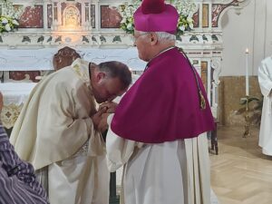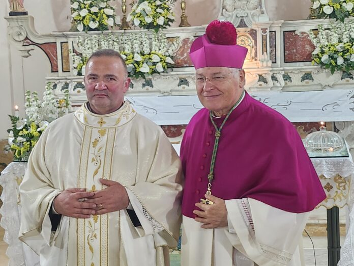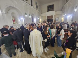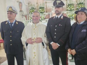 Ricordandoti che il Signore ricompensa con il Paradiso chi dona una goccia d’acqua data in suo nome. Grazie a te, caro Don Vito, che sempre hai avuto fiducia in me, persino chiedendoti consiglio. Ho trovato in te sempre un amico, un fratello anche un padre anche se sono molto più grande di te. Ma mi hai insegnato come debba essere un prete: gioiso, disponibile, generoso. Infine, come Marco anche io sono semplicemente avvolto da un lenzuolo trasparente che ha stento nasconde la sua persona”. E ha continuato: “Grazie di tutto quello che avete fatto e che continuerete a fare per me alla gente di questo posto, Bosagro, Beato e Quindici. La mia parrocchia che mi ha visto crescere come la gente di Gerusalemme conosceva Marco. Vi prometto la mia preghiera, vi assicuro la mia disponibilità. Non nasconderò mai la semplicità e generosità che ho imparato da voi e conserverò nel cuore ogni giorno l’incoraggiamento che mi avete dato. Saluto le autorità civili e militari presenti e chiedo al Signore che ogni giorno vivano con prudenza e moderazione. Perché come ricorda San Paolo, maestro di Marco, dai loro atteggiamenti dipende la vita calma e tranquilla della società”. Infine il