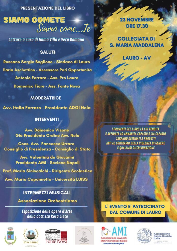 Lauro, il 23 novembre presentazione del libro “Siamo comete siamo come te”