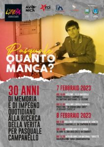Trent’anni di memoria e di impegno quotidiano alla ricerca della verità per Pasquale Campanello, recita il manifesto realizzato dagli organizzatori delle iniziative per l’agente penitenziario, tra cui Libera, Avionica, Arci, Pro Loco di Mercogliano, Forum Giovani di Mercogliano.