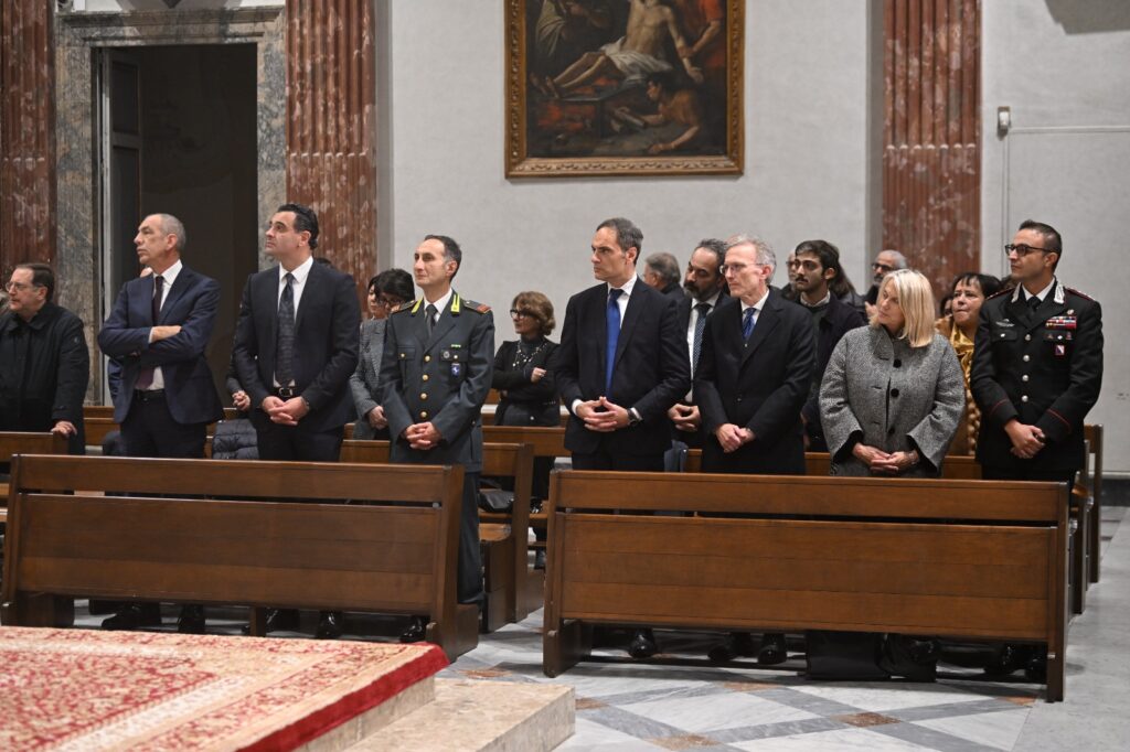 AVELLINO- “Quella camicia intrisa di sangue, che sembra stia stretta in questo reliquiario, pronta ad esplodere e’ una bandiera che sventola, una bandiera che sventola sulla nave della Chiesa, sulla nave dell’uomo”. Un vessillo sulla nave dell’uomo e della Chiesa per indicare una strada. E’ questa l’immagine che monsignor Arturo Aiello consegna nella sua omelia al valore del martirio di Rosario Livatino. Nella serata in cui il Duomo di Avellino ha ospitato la reliquia del Beato, un brandello della camicia insanguinata del magistrato ucciso dalla mafia, che il vescovo ha voluto fosse sistemata sull’altare. Spiegando anche il perché di questa scelta. “Su quell’ altare noi diciamo e lo ripeteremo anche tra poco: questo è il mio corpo, questo è il mio sangue e il corpo e sangue di Gesù che rivive nel corpo e nel sangue dei martiri. Che ci salva ma anche ci informa sulla vita di tante persone che noi, non certo senza una certa difficoltà dal punto di vista civico, chiamiamo eroi”. Proprio come il magistrato ucciso dalla mafia nel settembre del 1990. “Livatino e’ un eroe del suo dovere-ha spiegato il vescovo- A volte amiamo vestire le vite dei santi e dei beati di eventi fenomenali e poteri paranormali e invece ci imbattiamo in un uomo rispettoso, un cittadino, credente e professionista rispettoso dei suoi doveri. Ogni mattina va al lavoro non per marcare un cartellino, ma perché sa che dalla professionalità con cui affronterà il suo lavoro, potrà ricadrà un bene”. Un martire di una terra che e’ stata teatro di una guerra, ma che come ha ricordato citando Foscolo e’ una terra santa: l’urne de’ forti…. bella e santa fanno al peregrin la terra che le ricetta”. Una santità nell’ordinarieta’ di un credente che aveva fatto del “Sub Tutela Dei, questa cifra, questo messaggio di cui non si riusciva a trovare il codice che lo potesse aprire, esprime al meglio la fede di Rosaio Livatino”. Una lunga riflessione anche sul Sud, sulla riflessione alle aree interne che la Chiesa sta promuovendo. Una celebrazione che ha chiuso una settimana di eventi organizzati in memoria del Beato Livatino. Alla cerimonia al Duomo erano presenti le massime autorità. A partire dal prefetto Paola Spena, il Procuratore Domenico Airoma, il comandante provinciale dell’Arma, il colonnello Domenico Albanese, il questore di Avellino Nicolino Pepe. Evento che ha registrato la partecipazione di molti giovani e delle scuole in particolare.