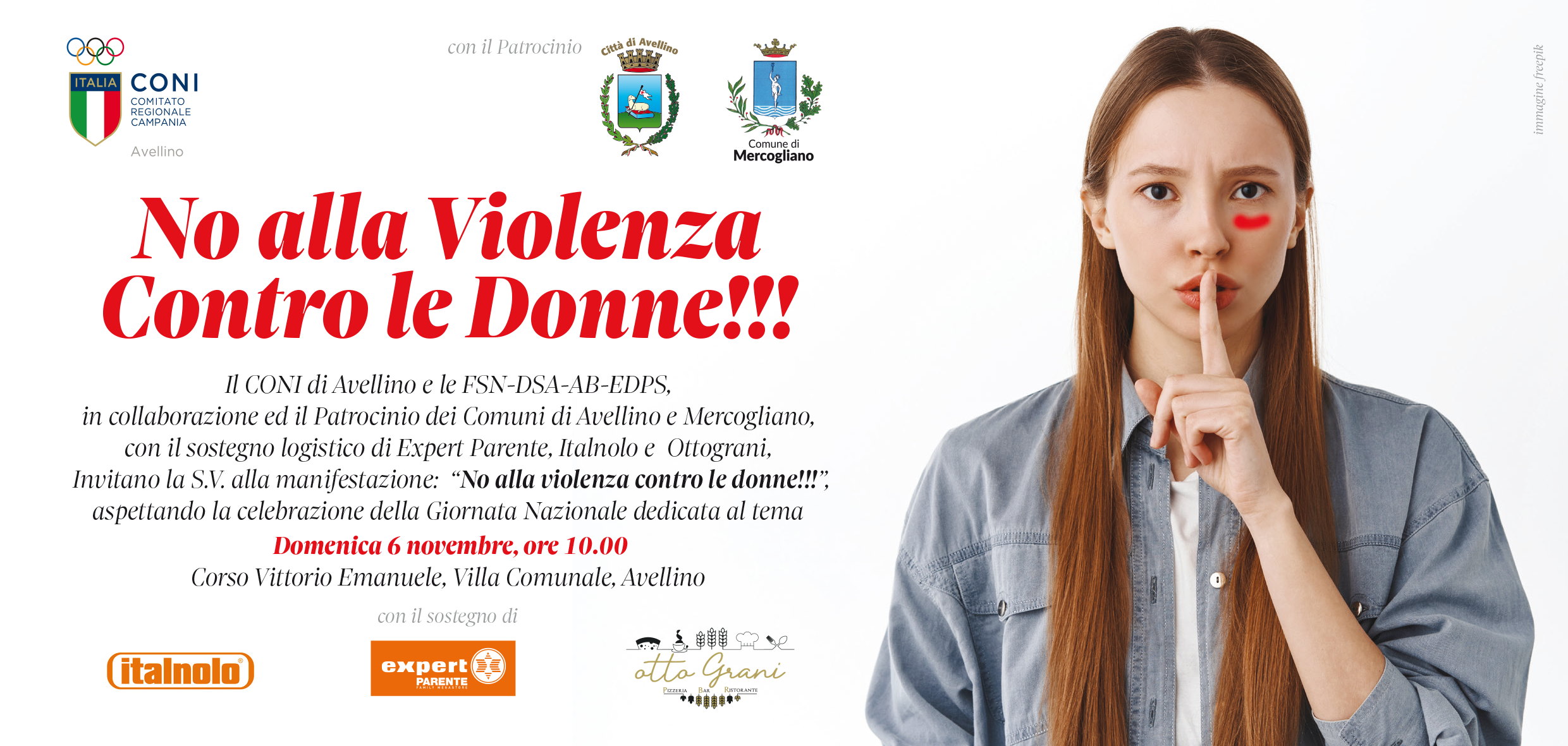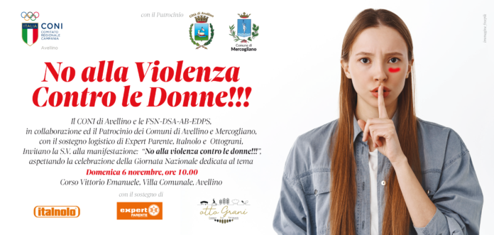 Lo sport irpino scende in campo contro la violenza sulle donne. Domenica 6 novembre il Coni di Avellino e le Federazioni Sportive Nazionali (FSN), Enti di Promozione Sportiva (EPS) e Discipline Sportive Associate (DSA) animeranno la giornata con attività di sensibilizzazione, per inculcare in tutti i partecipanti alla manifestazione, negli atleti e nelle società sportive, un principio importante: il rispetto delle donne. Sarà un evento molto interessante, con rappresentazioni sportive e dibattiti. Parteciperanno anche associazioni impegnate quotidianamente nella tutela delle donne.