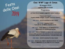 Anche per il 2014 l’Oasi WWF “Lago di Conza” aderisce all’evento nazionale “Festa delle Oasi 2014” organizzato dal WWF Italia per il 18 maggio con il coinvolgimento di tutte le Oasi d’Italia al fine di avvicinare le persone alla natura e alle sue bellezze. L’Oasi di Conza invita tutti coloro che lo desiderano, a trascorrere una giornata nell’inconfondibile verde del paesaggio Irpino e propone per l’occasione una serie di attività che, tra laboratori tematici, visite guidate e attività di inanellamento degli uccelli, consentiranno di conoscere meglio l’Oasi e vivere una giornata all’insegna della natura.
