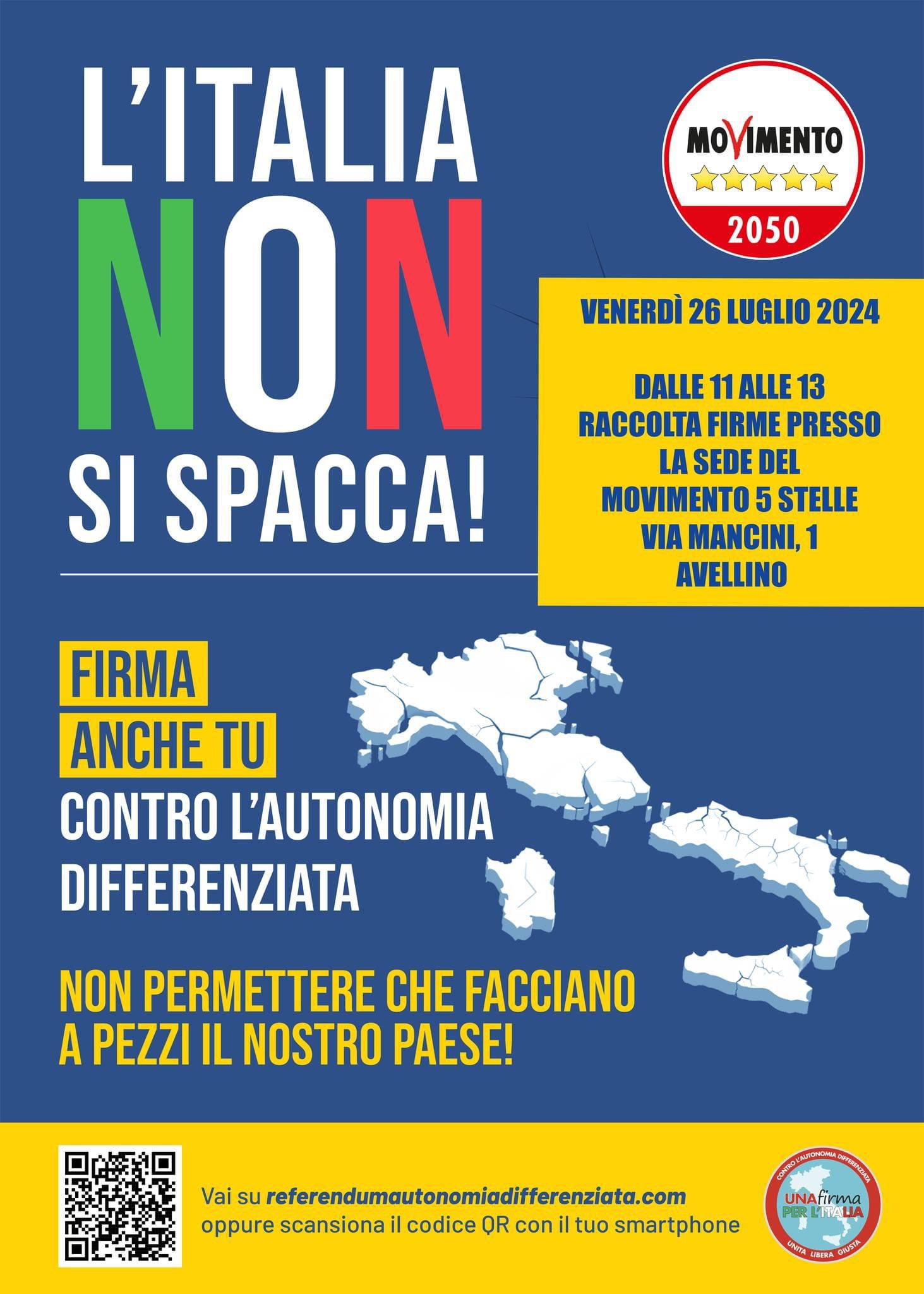 📍 Venerdì 26 luglio 2024 dalle 11 alle 13 nella sede del Movimento Cinque Stelle in sede ad Avellino (via Mancini,1) raccolta firme.