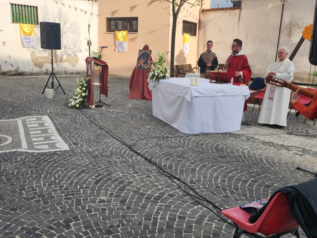 In questa festa di San Marco Evangelista alla luce del nostro essere chiamati siamo tutti chiamati all’ annuncio del vangelo”. Un riferimento anche all’indole “secolare”, ovvero alla parola di Dio trasmessa dai laici in quelle realtà dove non c’è intervento dei religiosi. E Don Alfonso ha aggiunto: “San Francesco dice andate ad annunciare il Vangelo anche con le parole. Perchè in primis dobbiamo testimoniarlo con i gesti, sono questi che convertono il mondo. Che Dio ci aiuti a vivere come il nostro fratello Don Peppino”.