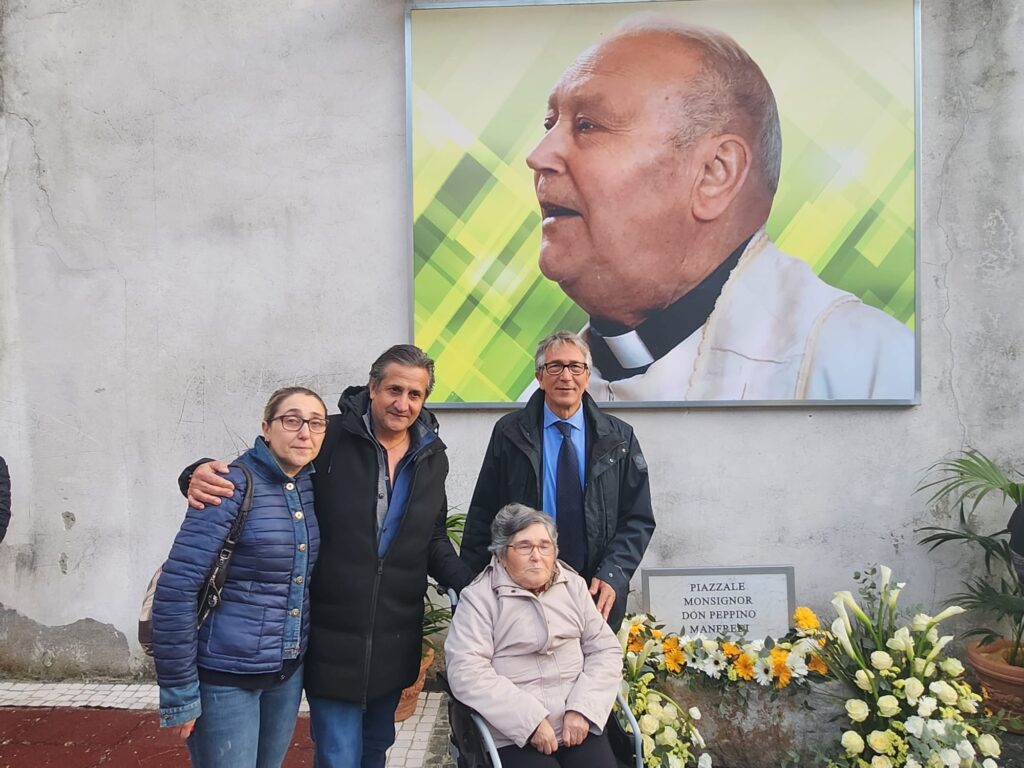 Il presule nolano, accompagnato dal parroco Don Alfonso Iovino e da Don Giovanni Ariano e Don Vito Cucca, ha presieduto alla cerimonia di intitolazione di una piazza del comune del Vallo di Lauro al parroco, che oltre all’impegno per gli ultimi e per i più deboli è stato anche un cultore della storia locale. Così al fianco di Franco Addeo, il sindaco che ha vissuto una grande intesa con Don Peppino e ha voluto fortemente la cerimonia e un ricordo di Monsignor Manfredi, sono stati presenti tutte le associazioni del paese e soprattutto il sindaco di Moschiano, Rosario Addeo, visto che prima di arrivare a Marzano per almeno una ventina di anni lo stesso sacerdote aveva anche guidato la parrocchia di Moschiano.