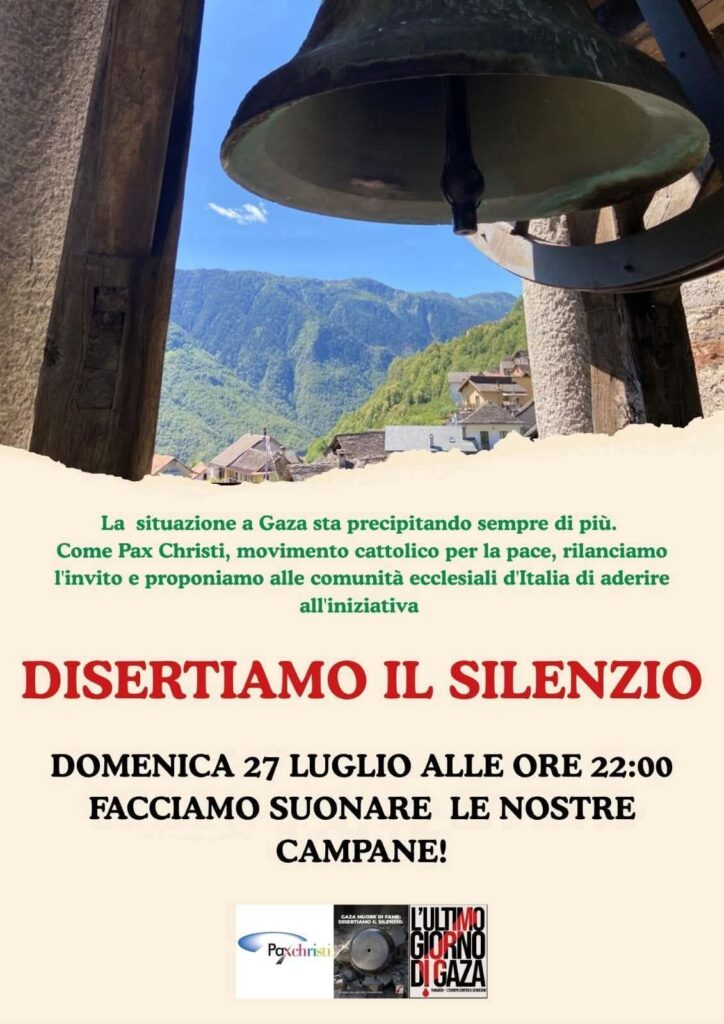L’iniziativa nazionale, lanciata da Pax Christi, si chiama “Disertiamo il silenzio” e invita tutte le comunità ecclesiali d’Italia ad aderire con un gesto semplice ma carico di significato: per 10 minuti, alle ore 22:00 di questa sera, far suonare le campane delle chiese per spezzare l’indifferenza.