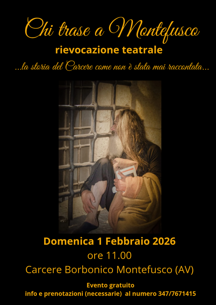 MONTEFUSCO- Domenica 1 febbraio , a Montefusco, le secrete del Carcere Borbonico, Monumento nazionale sin dal 1923,saranno animate dalle voci del Popolo del Carcere, le ombre di nero vestite che emergono dal buio della storia per raccontare le vicende dell’antico