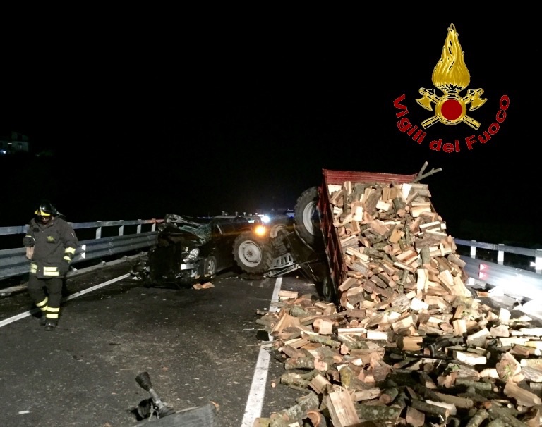 Alle ore 17.50 di oggi 10 novembre, i Vigili del Fuoco di Avellino sono intervenuti a Montemiletto sul viadotto Del Duca per un incidente stradale che ha visto coinvolti un’autovettura ed un trattore. Per cause ancora in corso di accertamento, i due veicoli si sono scontrati ed il trattore con carico di legna si è ribaltato.