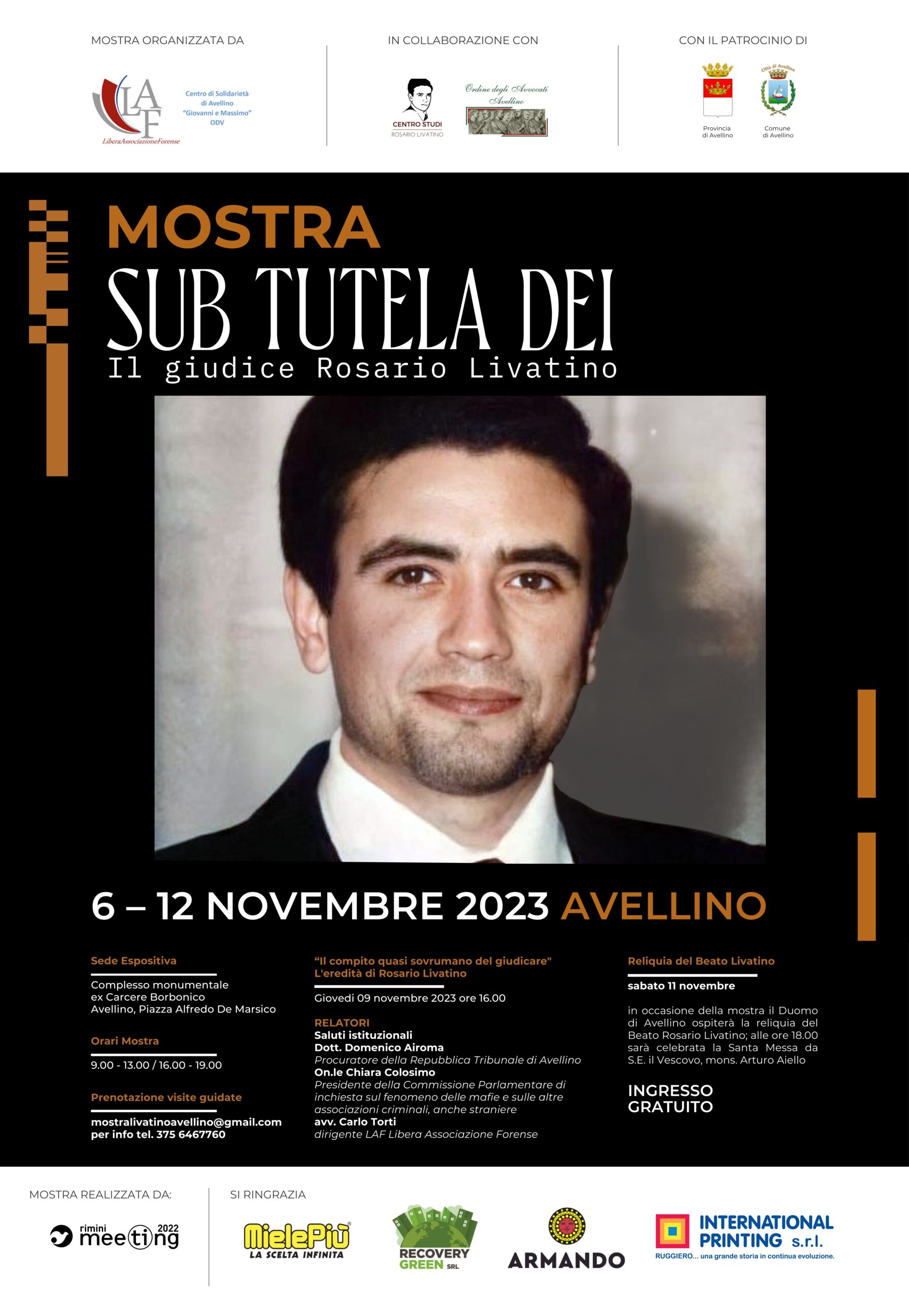 La reliquia del Beato Rosario Livatino sarà esposta nel Duomo di Avellino il giorno 11 novembre 2023 dove, alle ore 18 verrà celebrata la S. Messa, presieduta dal Vescovo, mons. Arturo Aiello.