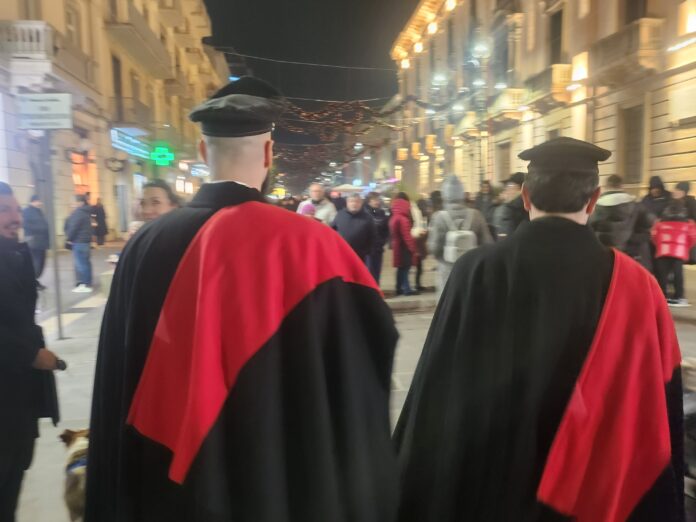 L’atmosfera del Natale, la magia di Mercatini e Albero e le luci, ma anche il fascino della divisa, non poteva essere altra che quella dell’Arma dei Carabinieri. Così ieri nelle vie della città capoluogo , in occasione dell’accensione del mega albero di Piazza Libertà, due militari in grande uniforme e mantella, hanno “pattugliato” e vigilato per alcune ore le vie centrali. Una divisa che ha attirato l’attenzione in particolare dei più piccini. Ma un modo per “pattugliare” le zone più sensibili in questo periodo natalizio e confermare l’attenzione per la sicurezza e la vicinanza alla comunità che vuole trascorrere una serata piacevole tra le attrazioni del Natale cittadino.