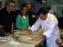 NEW YORK CITY – A New York successo oltre ogni previsione per la prima giornata dedicata al gusto e ai sapori d’Irpinia preparati dalle abili mani dello chef Antonio Pisaniello e promossi dalla Comunità Montana Terminio Cervialto di Montella (AV), guidata da Nicola Di Iorio, che attraverso l’evento statunitense – che costituisce uno dei tasselli più significativi del Piano Integrato Rurale “Itinerari irpini di pregio”, di cui la Terminio Cervialto è soggetto responsabile – continua su scenari sempre più rilevanti l’opera di promozione del territorio e delle sue eccellenze. Molto seguito ed apprezzato è stato il workshop interamente dedicato alla pasta fresca, tradizionale piatto irpino, fatto di ingredienti semplici ma dal gusto inimitabile. A New York, presso l’elegante e sobria sede della James Beard Foundation al Greenwich Village, dinanzi ad una “platea” composta da addetti ai lavori, giornalisti ma anche da semplici appassionati della cucina italiana, lo chef Pisaniello ha spiegato i segreti e le tecniche per la preparazione di tre tipi di pasta che costituiscono l’asse portante della cucina tradizionale irpina: il cecaluccolo, il fusillo e la maccaronara. I partecipanti al workshop hanno apprezzato soprattutto la possibilità di creare, attraverso semplicissimi ingredienti – sostanzialmente acqua e farina – formati di pasta così interessanti e piatti così gustosi a conferma di una cucina, quella irpina, che mantiene inalterata la sua suggestione, che riesce a non tradire la tradizione, ma che sa evolversi attraverso un’interpretazione moderna. Lo chef Pisaniello ha illustrato le particolari tecniche attraverso cui dal semplice impasto nascono i gustosi piatti della tradizione irpina. Con gli immancabili strumenti da cucina – il ferro per i fusilli e il mattarello per la maccaronara, donato poi ad ogni partecipante del workshop – il pubblico americano ha osservato con attenzione – nonché sperimentato con le proprie mani – le varie fasi della lavorazione. Lo chef Antonio Pisaniello, uno degli interpreti più interessanti della nuova cucina irpina, ha riscosso un indiscusso successo, così come l’intero workshop, che ha affascinato i partecipanti, ansiosi di servire sulle proprie tavole le ricette tipiche irpine illustrate dallo chef. Presenti, tra gli altri, anche numerosi americani di origini irpine che non hanno mai visitato la terra dei propri nonni, ma che intendono riavvicinarsi alle proprie radici proprio attraverso la cucina, i sapori ed il gusto tradizionale della provincia di Avellino. A conclusione del workshop sono stati degustati i tre piatti presentati, accompagnati da pregevoli vini irpini prodotti dalle aziende Di Meo di Salza Irpina e Caggiano di Taurasi.