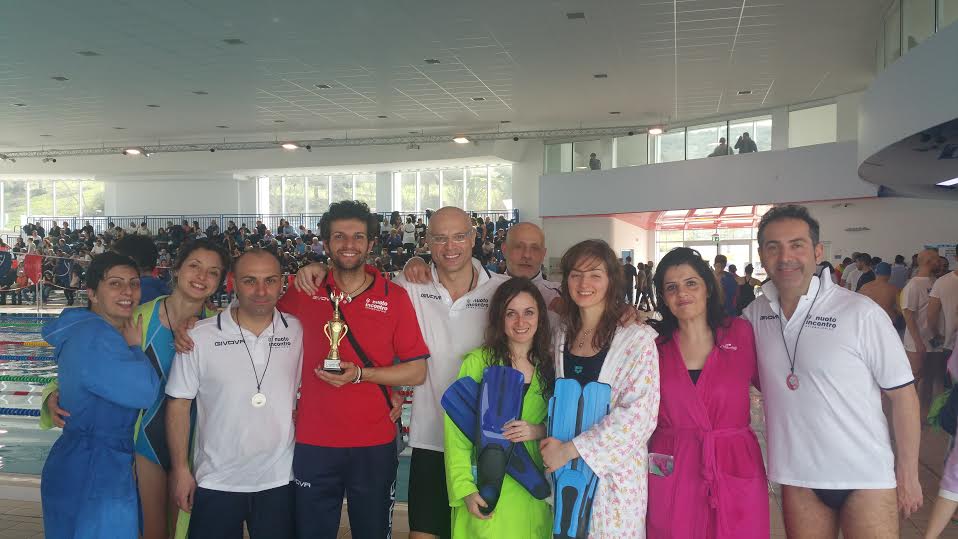 Domenica 7 Febbraio 2016 si è svolto ad Agropoli il Campionato Interregionale Invernale di nuoto pinnato presso il Centro Sportivo Elysium Sport. Gremita la tribuna. Numerosi gli atleti in gara provenienti dalle più note società sportive. Tra queste si è distinta la Società New Sporting In del Complesso INCONTRO di Ariano Irpino, partecipando all’atteso evento sportivo con nove atleti: grandiosa prestazione di Pagliarulo Vito M45, 1°classificato nei 50 e nei 100 mt SL; 3°posto per Rossetti Antonio M45 nei 50 mt SL; 3°posto per Addonizio Fiorentina M30 nei 50 e 100 mt SL; ottime le prestazioni di Dotoli Sabrina M25, di Lo Conte Giovanna M30, di Riccio Nicoletta M35, di Grasso Tania M40, di Piccolo Nicola M35 e di Marco La Carità tutti nelle stesse specialità dei 50 e 100 mt SL.