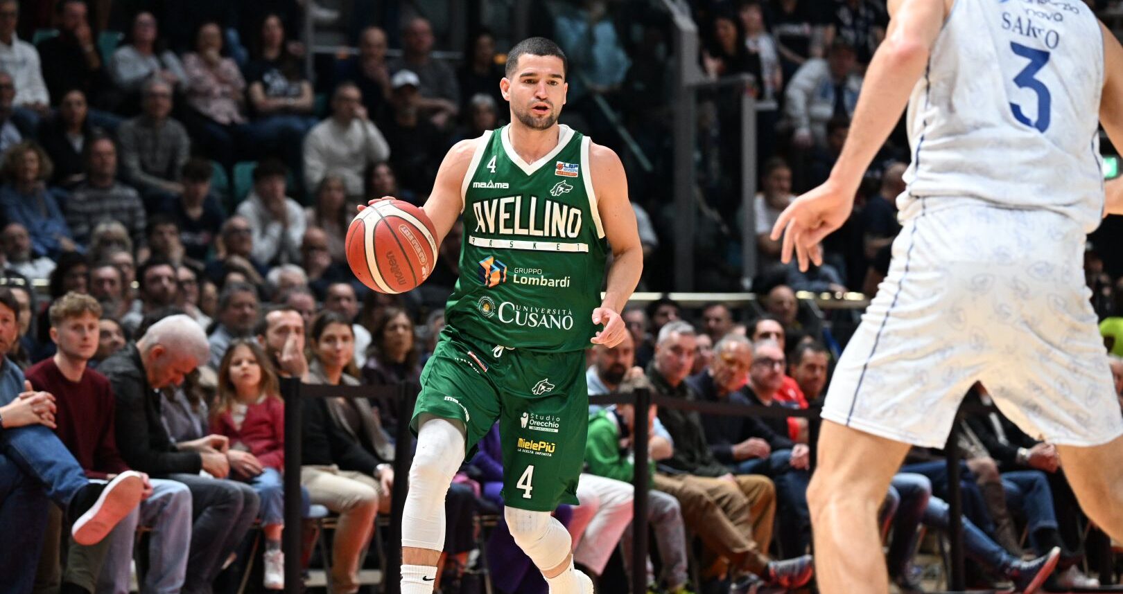 Pronti via la Fortitudo si porta subito sull’8-0 e coach Di Carlo chiama un immediato time-out. A rompere l’inerzia biancoblu è Lewis, che mette dentro i primi due punti per Avellino. Al quinto minuto il parziale è di 11-7 per Bologna. Con una tripla di Mussini gli irpini si portano sul -3 (13-10). Sorokas, percentuali da fuori e secondi tiri, assieme ad una difesa intensa consentono alla squadra di casa di chiudere avanti il primo quarto 25-17.