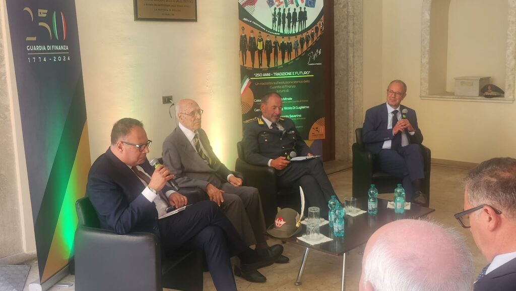 Un suggestivo viaggio nei 250 anni di storia della Guardia di Finanza ha fatto questa mattina da prologo alla celebrazione che si svolgera’ nel pomeriggio a Piazza Liberta’. Il racconto di un Corpo che in due secoli e mezzo ha visto protagonisti in ruoli prestigiosi numerosi irpini. A partire già dai primi anni del Novecento. E se la traccia è “Tradizione e Futuro” al confronto nel Chiostro della Provincia di Avellino dalla battaglia di Zanzur e quindi la tradizione più importante delle Fiamme Gialle, si è passati all’azione di contrasto messa in campo negli ultimi mesi sfruttando quella che rappresenta il futuro, ovvero l’intelligenza Artificiale. Non a caso uno dei relatori e moderatori dell’incontro e’ stato il giornalista Antonio Pascotto, che ha dedicato un libro, richiamato in uno dei passaggi dal comandante provinciale delle Fiamme Gialle Salvatore Minale, intitolato “Romanzo Digitale”. Un confronto sulla storia della Guardia di Finanza, in particolare sul contributo in quella storia degli irpini. Al tavolo c’erano il Generale di Divisione in congedo, Nicola Di Guglielmo, e il Colonnello (Aus) Gerardo Severino, già Direttore del Museo Storico della Guardia di Finanza, il Comandante Provinciale di Avellino della Guardia di Finanza, Colonnello Salvatore Minale e a portare i suoi saluti e’ stato il “padrone di casa” ovvero il presidente della Provincia Rizieri Rino Buonopane. “Da una terra generosa come l’Irpinia – ha spiegato il colonnello Severino- non potevano che nascere persone generose, non solo nelle istituzioni, penso ad esempio alla figura del De Sanctis, ma altri personaggi che possono vantare un grande contributo anche nella storia della Guardia di Finanza. Il generale Antonio Papaleo, nato a Lacedonia, che già nel 1911 era a capo di una clompagnia e partecipo’ alla guerra italo- turca, e’ stato il più longevo comandante in seconda, perche’ in quegli anni il comandante generale del Corpo proveniva dall’Esercito, dopo una carriera formidabile ha retto il corpo dal 1930 al 1940. Ci sono stati anche Francesco Clericuzio che era di Ariano, fondatore dei gruppi sportivi delle Fiamme Gialle, personaggi che hanno fatto la storia della Guardia di Finanza. Il colonnello Minale ha parlato del maestro D’ Elia. Abbiamo la medaglia d’oro ad Attilio Corrubia, morto in Grecia per mano dei tedeschi perché aveva fatto il partigiano. Dobbiamo dire grazie a Salvatore Minale che ha avuto la straordinaria intuizione di rendere onore alla sua memoria. Ma possiamo ricordare anche il comandante generale Saverio Capolupo, finanzieri eroici ci sono stati in tute le epoche e sarebbe impossibile ricordare quello di ognuno. L’ Irpinia una terra generosa, perché ovunque sono stati questi uomini sono stati caratterizzati dalla caparbietà e dalla capacità di saper obbedire, quel richiamo al “lupo irpino”. A Severino e’ toccato anche introdurre l’intervento del generale Nicola Di Guglielmo, una circostanza che lo ha gratificato, perché ha ricordato come: ” nel 1978 l’ allora tenente colonnello Di Guglielmo e stato tra i primi ufficiali che ho incontrato nella Caserma Vincenzo Giudice di Salerno. Vidi questo ufficiale così alto che mi mise un po” di soggezione. Poi lui come me si è fatto contagiare dalla storia. Per questo sono felice ed onorato di presentare la fiamma gialla più longeva di questa provincia”. Si, perché il generale Di Guglielmo domani compira’ 96 anni e 7 mesi, di cui 40 spesi nelle Fiamme Gialle. Un grande cultore di De Sanctis, a cui ha dedicato nel 2017 anche un libro. “Mi ha dato l’ occasione non solo di parlare da finanziere ma anche da appassionato di storia- ha spiegato Di Guglielmo- Ai miei tempi chi arruolava era il gruppo. L’ Irpinia è stata capoluogo ma dopo l’ abolizione della feudalità. Avellino era importante ma qui non era una sede demaniale. Severino ha fatto riferimento ad Ariano. Dove prima del 1774 i cosiddetti fucilieri di montagna, una compagnia inviata da Carlo III perché non volevano pagare le tasse..Non voglio togliere nulla al contrabbando, e’ stato un po il primo reparto quello in Irpinia. Le guardie istituite da Murat. Sono episodi che accadono e la storia della Guardia di Finanza e’ fatta anche da questi tanti piccoli episodi. Abbiamo avuto Francesco Tedesco, che è poco studiato, che e’ stato ministri delle finanze con Giolitti. Ho trovato 4 decreti del ministro Tedesco relativi alla Guardia di Finanza. Papaleo era molto noto già quando sono entrato nel 1948 nella Guardia di Finanza. Aveva un figlio che era vicebrigadiere e lo fece mandare in un comando di confine. La Guardia di Finanza e’ rimasta spartana. Queste cerimonia si faceva solo a Roma. E si festeggiava il 5 luglio, sapete perche’? Perché la compagnia di Antonio Papaleo combatte’ nell oasi di Zanzur. In quella battaglia del 1912 c’era anche il tenente Clericuzio”.