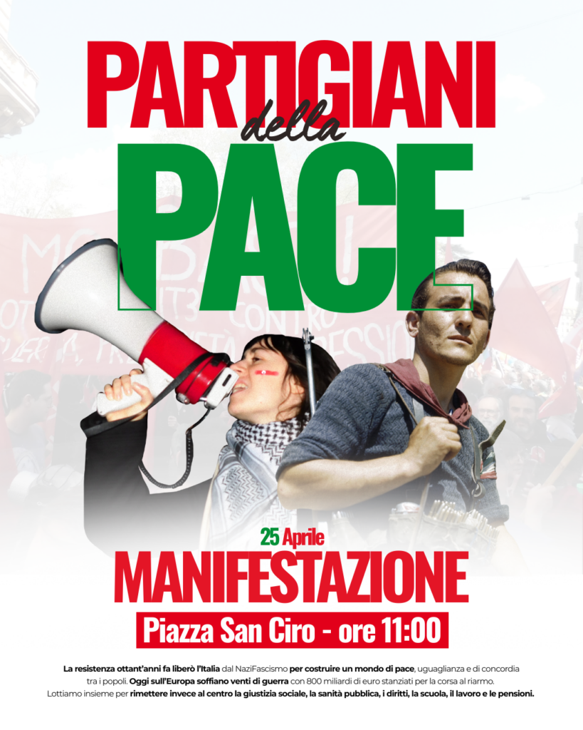 La resistenza che nel 1945 liberò l’Italia dall’oppressione nazifascista era piena di donne e uomini che volevano costruire un mondo di pace e di concordia tra i popoli. L’Italia e il mondo di oggi non è quella per il quale i partigiani versarono il sangue. Venti di guerra soffiano pericolosamente sull’Europa, l’Unione Europea ha stanziato 800 miliardi di euro per una piano di riarmo che rischia di portarci sull’orlo della terza guerra mondiale. Nell’ambito del piano di riarmo europeo, l’Italia in quattro anni contribuirà con 88 miliardi di euro. Una cifra folle, di soldi che sarebbero potuti essere stati spesi per potenziare la sanità pubblica, migliorare l’edilizia scolastica, aumentare i salari e le pensioni e in generale rafforzare lo stato sociale. Per questo il 25 Aprile assume anche una nuova valenza, di lotta per la pace e per i diritti sociali, per evitare l’escalation di un nuovo conflitto globale dove al fronte verranno mandati giovani e lavoratori a combattere contro altri giovani e lavoratori, noi non ci stiamo. E scendiamo in piazza al fianco di tutti i popoli che contro colonialismi e imperialismi lottano per la propria liberazione, tra questi quello palestinese, che ogni giorno combatte per non scomparire e che anch’esso un giorno avrà il suo 25 Aprile.