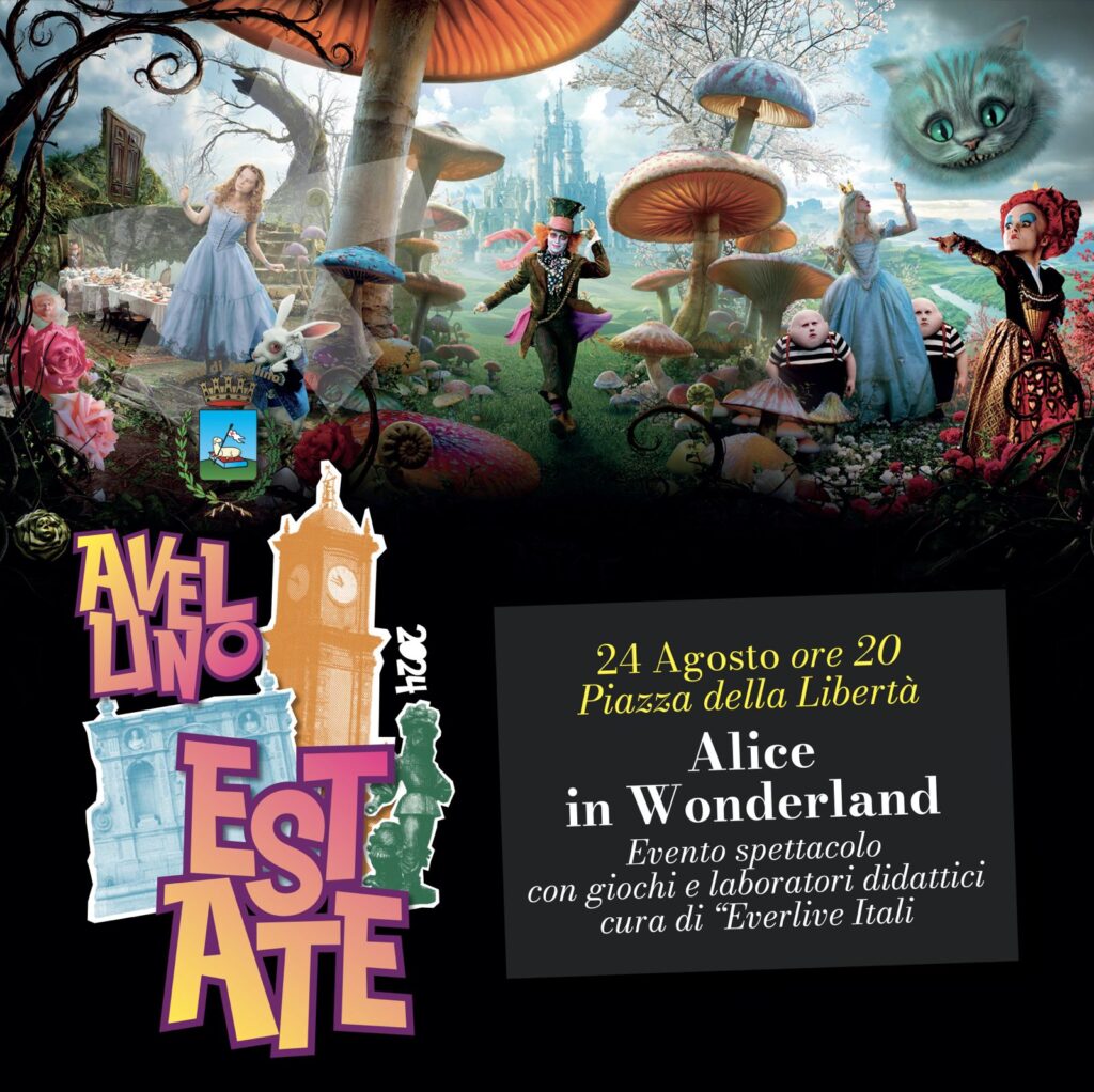 Piazza Libertà come il Paese delle Meraviglie. Domani, 24 agosto, il “Festival delle Fiabe” è di scena nella principale agorà del capoluogo con “Alice in Wonderland”, evento spettacolo con giochi e laboratori didattici a cura di “Everlive Italia”, voluto dall’Amministrazione Nargi.
