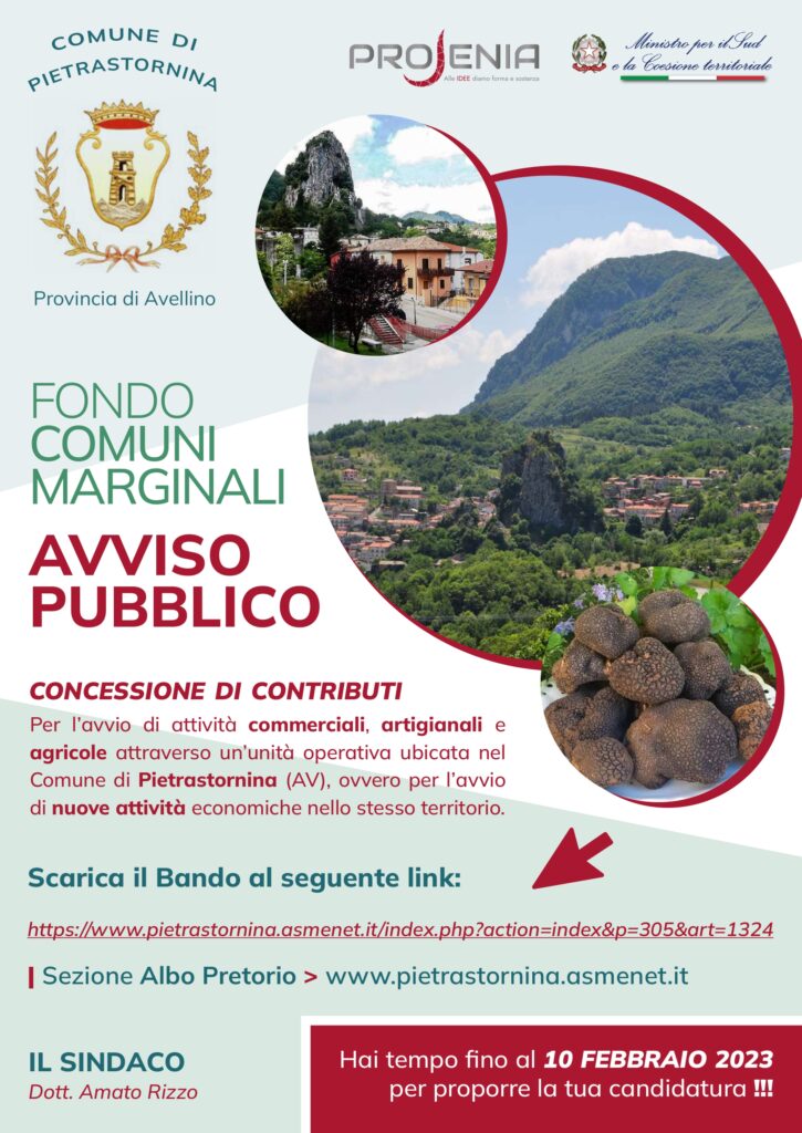 “Per l’anno in corso lo stanziamento previsto è pari ad € 35.989,50” precisa il Sindaco Dott. Amato Rizzo, “di cui € 25.989,50 per l’avvio delle attività commerciali, artigianali e agricole attraverso un’unità operativa ubicata nel nostro territorio e i restanti 10.000 € a favore di coloro che trasferiranno la propria residenza e dimora abituale a Pietrastornina”.