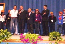 Prata P.U. – E’ fatta. Il premio Nazionale “Giornalista per 1 giorno” e la “Bussola d’Oro” arricchisce il palmares dell’I.C. “Carlo Alberto Dalla Chiesa” di Prata P.U. Da oggi è, infatti, più ricco. “Giornalista per 1 giorno”, è stato conseguito dopo una severa selezione nazionale (solo 16 le scuole vincitrici, su 2832 redazioni partecipanti); per la “Bussola d’oro” il premio è andato ad un giovane redattore de “Il banditore”, Antonio Gnerre. Gli attestati sono stati consegnati dal dott. Ettore Cristiani, Presidente di Albo Scuole, Associazione Nazionale di Giornalismo Scolastico, presso il Teatro Garden di Chianciano Terme.T estimonial della manifestazione, Maurizio Costanzo, per il giornalismo, Angelo Peruzzi, portiere della Nazionale, per lo sport, Gimigliani, inviato di Striscia la Notizia e Mister Liù, showmen, per la TV. Al termine della cerimonia di premiazione alunni e professori sono stati ospiti del gran galà che si è svolto presso il salone “Nervi” al Parco delle Terme di Chianciano. Ad accompagnare i “mini-redattori” irpini i docenti: Giuseppe Zaccari, Rosina Tirone, Rita Roca.