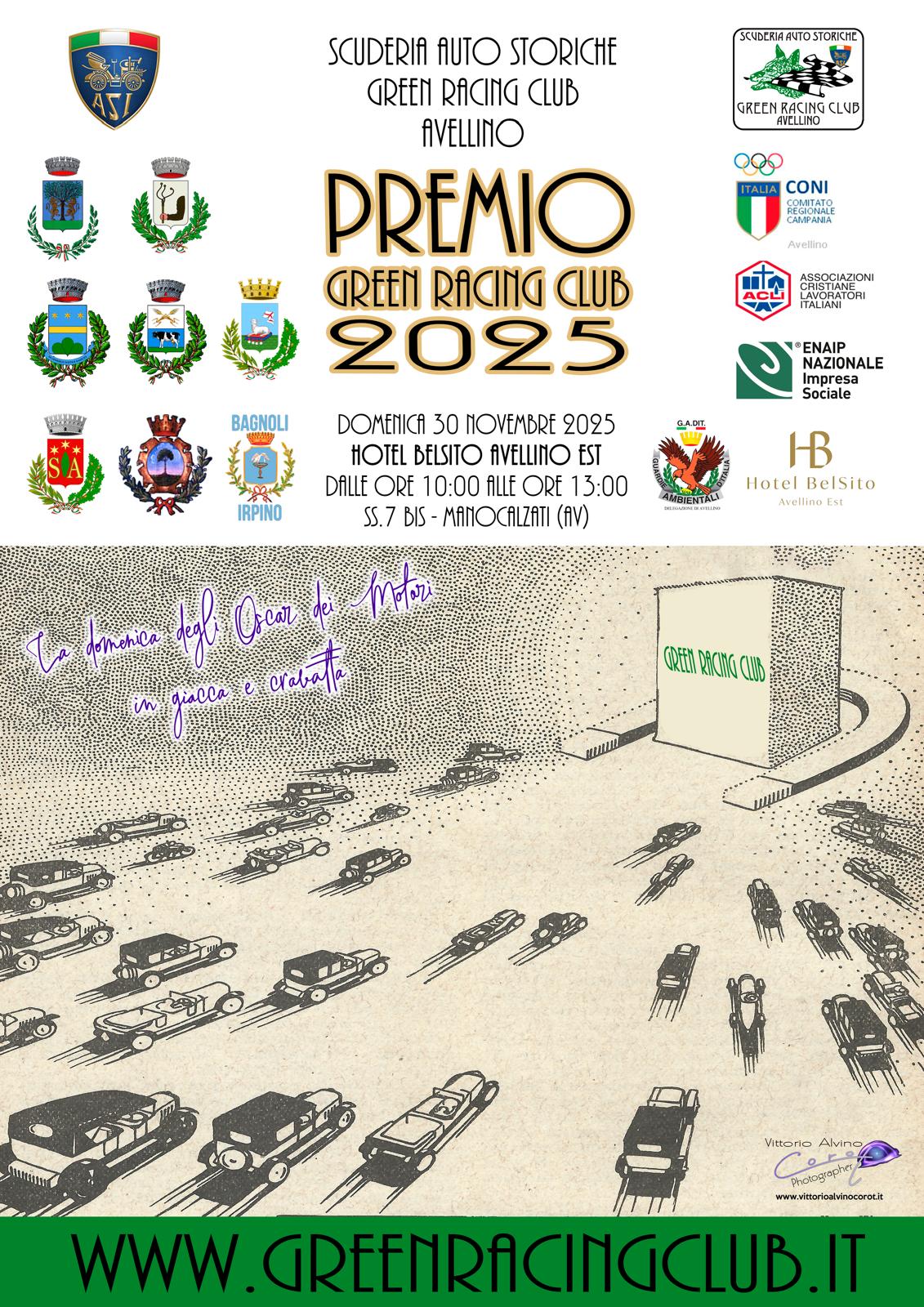 Domenica 30 novembre si svolgerà la prima edizione del PREMIO GREEN RACING CLUB. L’evento organizzato dalla Scuderia Auto Storiche Green Racing Club di Avellino, Club Federato A.S.I. dal 2008, è patrocinato dal CONI Avellino, presieduto dal prof. Giuseppe Saviano, dall’ ACLI e ANAIP, dai comuni di Atripalda, Bagnoli Irpino, San Potito, Parolise, Salza Irpina, Sorbo Serpico, Montefredane ed Avellino. La scuderia irpina attraverso questo evento intende premiare tutti gli equipaggi che hanno preso parte ai propri eventi organizzati durante l’anno che sta per concludersi. Questo progetto ha determinato un elenco di circa duecentocinquanta nomination di candidati al Premio Green Racing Club, appassionati provenienti da tutta la regione, che si daranno appuntamento presso la struttura dell’Hotel Bel Sito Avellino Est. Infatti, a partire dalle ore 10:00 inizieranno le consegne degli attestati di partecipazione 2025 presso la Sala Gesulado dell’Hotel. Se ci saranno condizioni meteo favorevoli sarà prevista un’esposizione di veicoli storici nel piazzale antistante il Bel Sito al quale potranno partecipare tutti gli appassionati di motori con veicoli costruiti fino al 31 dicembre del 2005. Durante la mattinata è prevista anche la partecipazione di alcuni sindaci dei comuni interessati dagli eventi di motori firmato dal Green Racing Club durante il 2025: Notte Prima degli Esami, Circuito del Laceno (Bagnoli Irpino), Avellino Auto Storiche (Avellino), Giornata Nazionale del Veicolo Storico (Montefredane), Circuito Salzola (Atripalda – San Potito Ultra – Parolise – Salza Irpina – Sorbo Serpico). A partire dalle ore 13:30 presso la Sala Bel Sito si svolgerà il pranzo sociale. Anche questa una iniziativa orientata a promuovere l’Automobilismo Storico in Irpinia.