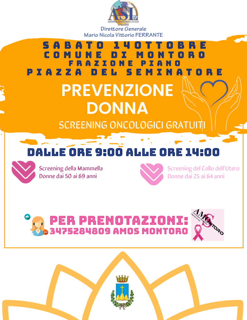 Sabato 14 ottobre le unità mobili dell’ASL faranno tappa nel Comune di Montoro in Piazza del Seminatore Frazione Piano. Dalle ore 9.00 alle ore 14.00 sarà possibile aderire allo screening gratuito della mammella (per le donne dai 50 ai 69 anni) e del collo dell’utero (per le donne dai 25 ai 64 anni).
