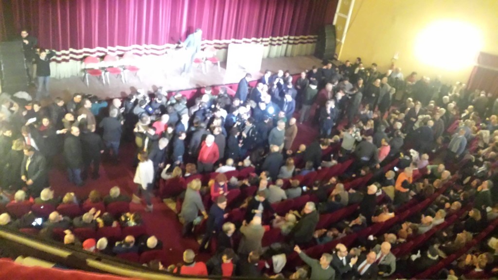 Parte così la convention napoletana di Antonio Bassolino, in uno dei teatri più grandi della città, l’Augusteo con molte persone in piedi.