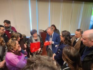 “Anche quel posto lì- ha spiegato il Procuratore- Napoli Nord, in qualche modo e’ ritornato, come in una ricorrenza. E’ ritornato in modo assai singolare, quando in uno degli ultimi messaggi che mi sono scambiato con Franco Greco, un collega che è scomparso repentinamente qualche settimana fa, con il quale abbiamo condiviso l’esperienza di Napoli Nord. In uno degli ultimi messaggi Franco Greco mi ha scritto: mi piacerebbe che tu continuassi la nostra opera, quello che abbiamo iniziato in quell’ufficio. Queste sono quelle cose, cara Giulia, che ti fanno capire che e” il momento di cambiare. Perche’ forse sei chiamato ad altro. Opporsi a questo porta sofferenza a te e a chi ti sta a fianco”. E ha concluso il suo intervento, rassegnando il suo orgoglio per l’affetto della comunita’ irpina: “E’ stato bello. Impegnativo, faticoso, ma mi sono divertito- ha spiegato Airoma- Sono stato molto bene qui con voi e devo dire che vado via con l’orgoglio di sapere che, conquistarsi l’affetto della gente irpina non e’ semplice. Questo e’ quello che porto con me, quello che porto nel mio cuore. L’affetto di gente seria, semplice, verace, come la gente di questa terra. Viva la Procura di Avellino, Viva il Tribunale di Avellino, Viva l’Irpinia”. Aerre