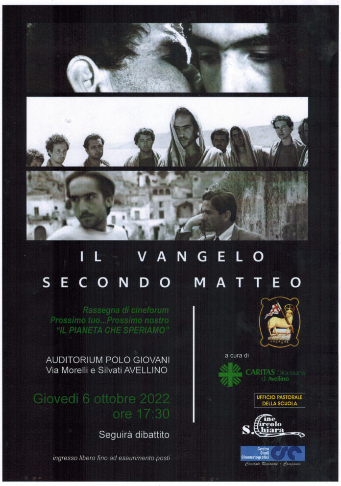 Si inizia con la proiezione del film “Il Vangelo secondo Matteo” di Pierpaolo Pasolini, con la versione restaurata dalla Cineteca di Bologna, un omaggio al cineasta nel centenario della sua nascita, un modo per restare al racconto Evangelico che privilegia i poveri, gli ultimi, gli umili; che dà speranza ad un messaggio di salvezza, sempre più posto in una visione della realtà che ci porta coscientemente all’esistenza di “una sola persona umana, unita ad una sola famiglia umana, ad un solo pianeta terra”.