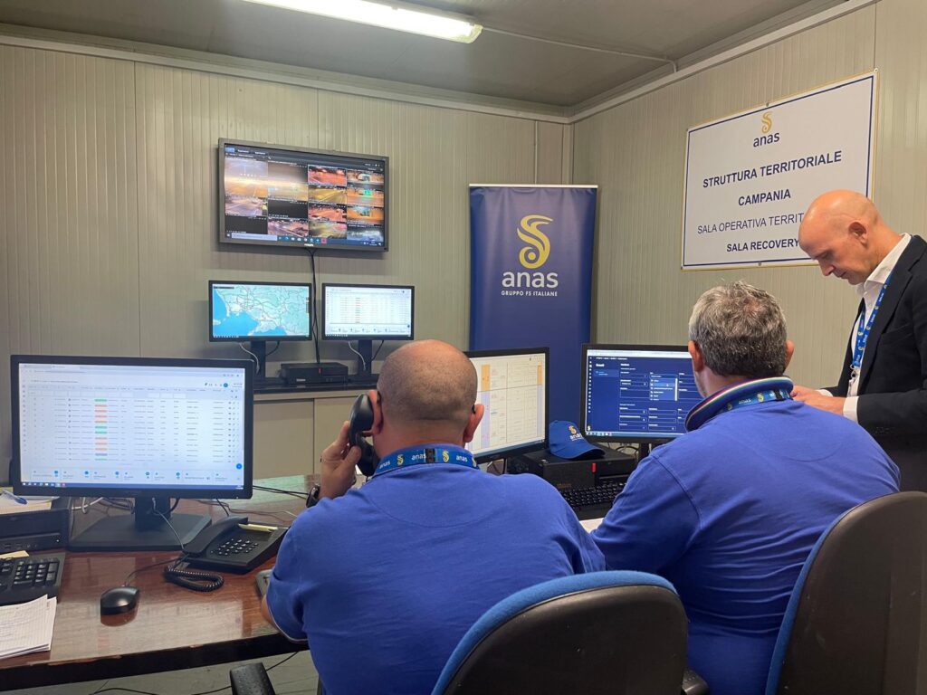 In particolare, anche in relazione al fatto che la Sede della Sala Operativa Territoriale di Anas Campania ricade all’interno della cosiddetta “Zona Rossa Flegrea” – a Fuorigrotta, a Napoli – Anas ha messo in atto il trasferimento di tale Centrale Operativa (comprendente il personale e le necessarie attrezzature e strumentazioni) presso per una Sala Operativa alternativa, individuata nei pressi del Centro di Raccolta Anas a Vico Equense (NA), in località Bikini. L’obiettivo resta quello di garantire la continuità del controllo della rete stradale e autostradale in gestione, anche in caso di eventuali situazioni di emergenza che dovessero realmente verificarsi su strada, come da attività ordinaria. Tale esercitazione nazionale, della durata di quattro giorni, è dunque un’importante occasione per Anas sia per attuare in toto il piano di settore Anas per il rischio ‘Campi Flegrei’, sia per testare la piena funzionalità di questa Sala “Recovery” in caso di necessità. Oltre che garantire, come di consueto, la continuità della circolazione anche lungo le arterie viarie individuate quali “vie di fuga”, infatti, il personale in servizio si è occupato anche di testare lo scambio di informazioni con i cosiddetti “posti di comando” e con il proprio personale sul territorio, al fine di assicurare la massima operatività in ogni circostanza. Anas, società del Gruppo FS Italiane, ricorda che quando guidi, Guida e Basta! No distrazioni, no alcol, no droga per la tua sicurezza e quella degli altri (guidaebasta.it). Per una mobilità informata l’evoluzione della situazione del traffico in tempo reale è consultabile anche su tutti gli smartphone e i tablet, grazie all’applicazione “VAI” di Anas, disponibile gratuitamente in “App store” e in “Play store”. Il servizio clienti “Pronto Anas” è raggiungibile chiamando il numero verde gratuito 800.841.148.