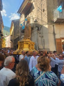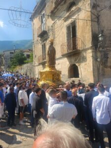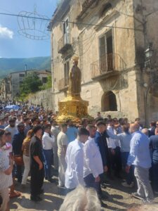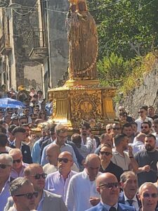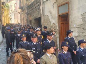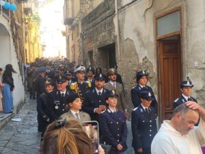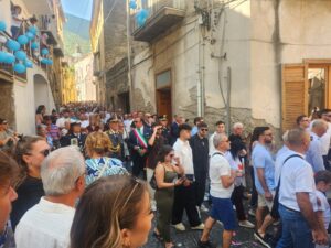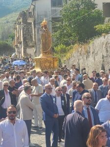 QUINDICI- C’e’ una collana d’ oro speciale tra gli ex voto che come ogni anno vengono apposti ai piedi di Maria Santissima delle Grazie, la Madonna ricoperta d’oro che a Quindici viene portata in processione l’otto settembre, il giorno “clou” di quello che nel Vallo di Lauro è il “festone” (anche per la profonda devozione che porta nel paese decine di quindicesi da ogni parte del mondo). Una collana legata ad una grazia ricevuta dalla Madonna, un miracolo. Due anni fa, la storia e’ stata ripresa in questi giorni anche dal parroco Don Vito Cucca, una ragazza originaria di Bracigliano ma residente negli Stati Uniti, decide di seguire il consiglio della mamma, residente nel comune salernitano ma devotissima della Madonna Delle Grazie, chiedendo una intercessione per avere un figlio che attendeva invano da dieci anni. Quattro mesi dopo l’incredibile notizia. La ragazza è in stato interessante. Nascerà una bambina, che oggi ha due anni e che proprio in onore della Madonna e della grazia ricevuta, viene chiamata “Grazia”. La mamma e nonna della bambina nel frattempo e’ venuta a mancare e così ieri, dopo la suggestiva ed emozionante cerimonia della vestizione della Madonna, e’ toccato alla signora Genoveffa, quindicese e conoscente della famiglia in America, affidare alla Commissione Festa la collana ex voto per la grazia ricevuta. Una notizia che carica di fede il legame già viscerale della comunità quindicese con Maria Santissima delle Grazie. Quest’anno, un vero colpo d’occhio della tradizionale processione organizzata l’otto settembre sono stati i componenti del Comitato Festa, tutti componenti di forze Armate e di Polizia, che hanno partecipato in divisa alla processione. I momenti più importanti della quale, restano senza dubbio l’uscita, anticipata quest anno per ragioni legate ai cambiamenti climatici dopo la messa officiata dal vescovo Francesco Marino e il passaggio attraverso i luoghi che portano ancora il segno della terribile frana del 1998. Un lungo applauso quello che ha salutato il passaggio di Maria Santissima delle Grazie lungo quella che un tempo era Via Fontana e Casamanzi, spazzati via dalla colata di fango del 1998. Oltre all’ omaggio reso a tutti i defunti davanti al Cimitero, diventato una delle tappe della processione da qualche anno. Un appuntamento di fede che attira i residenti di tutta l’area quello con la Madonna ricoperta d’oro. A chiudere questa festa sarà un concerto di Franco Ricciardi.