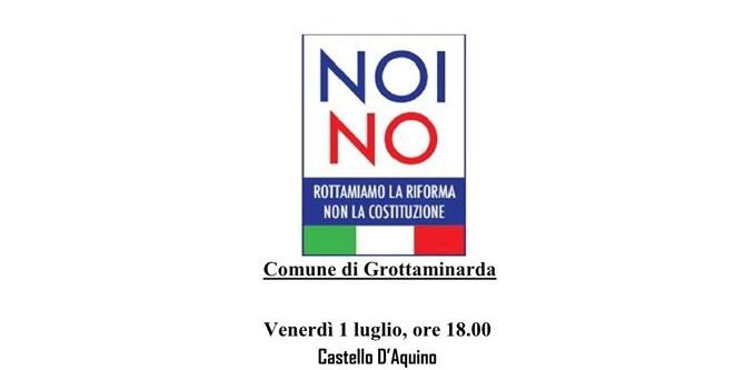 “Referendum Costituzionale: Riforma o rottamazione?”. Sarà questo il tema del dibattito organizzato venerdì 1 luglio al Castello D’Aquino di Grottaminarda (ore 18:00) da Il Comitato Popolare per il No alle Riforme Costituzionali e da Primavera Irpina.